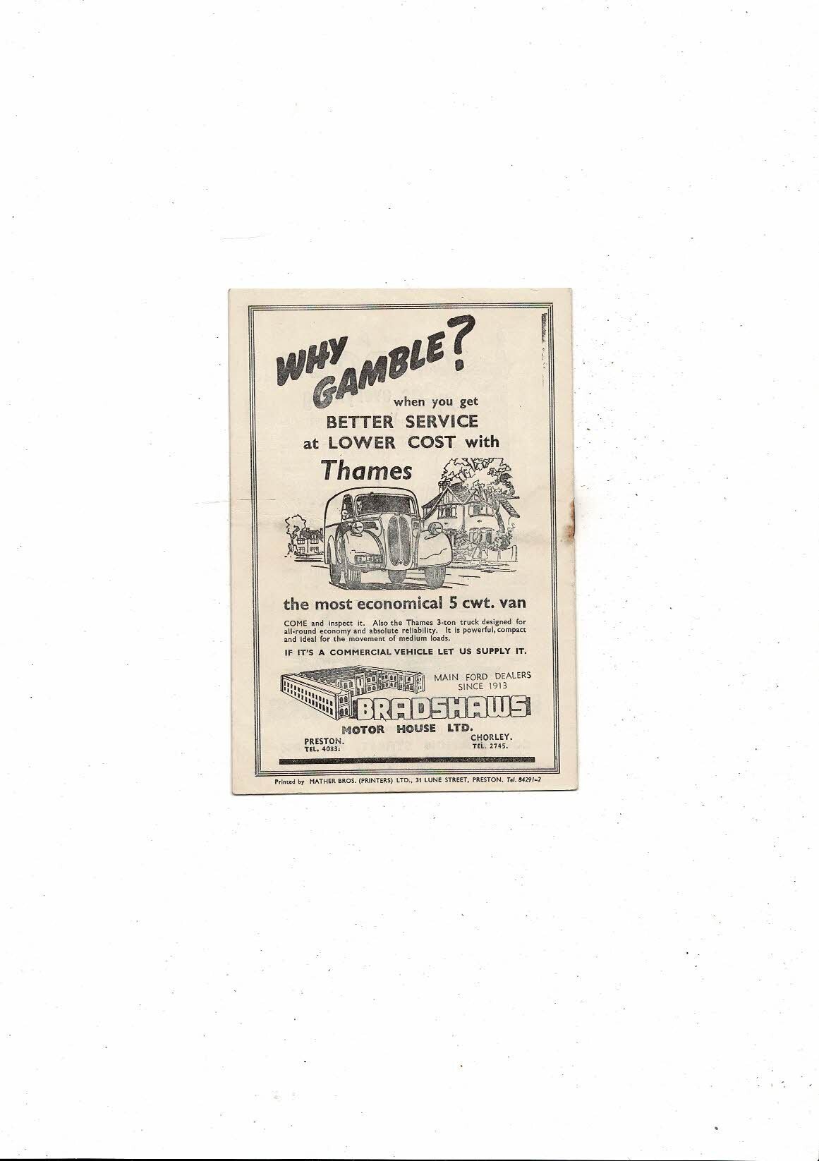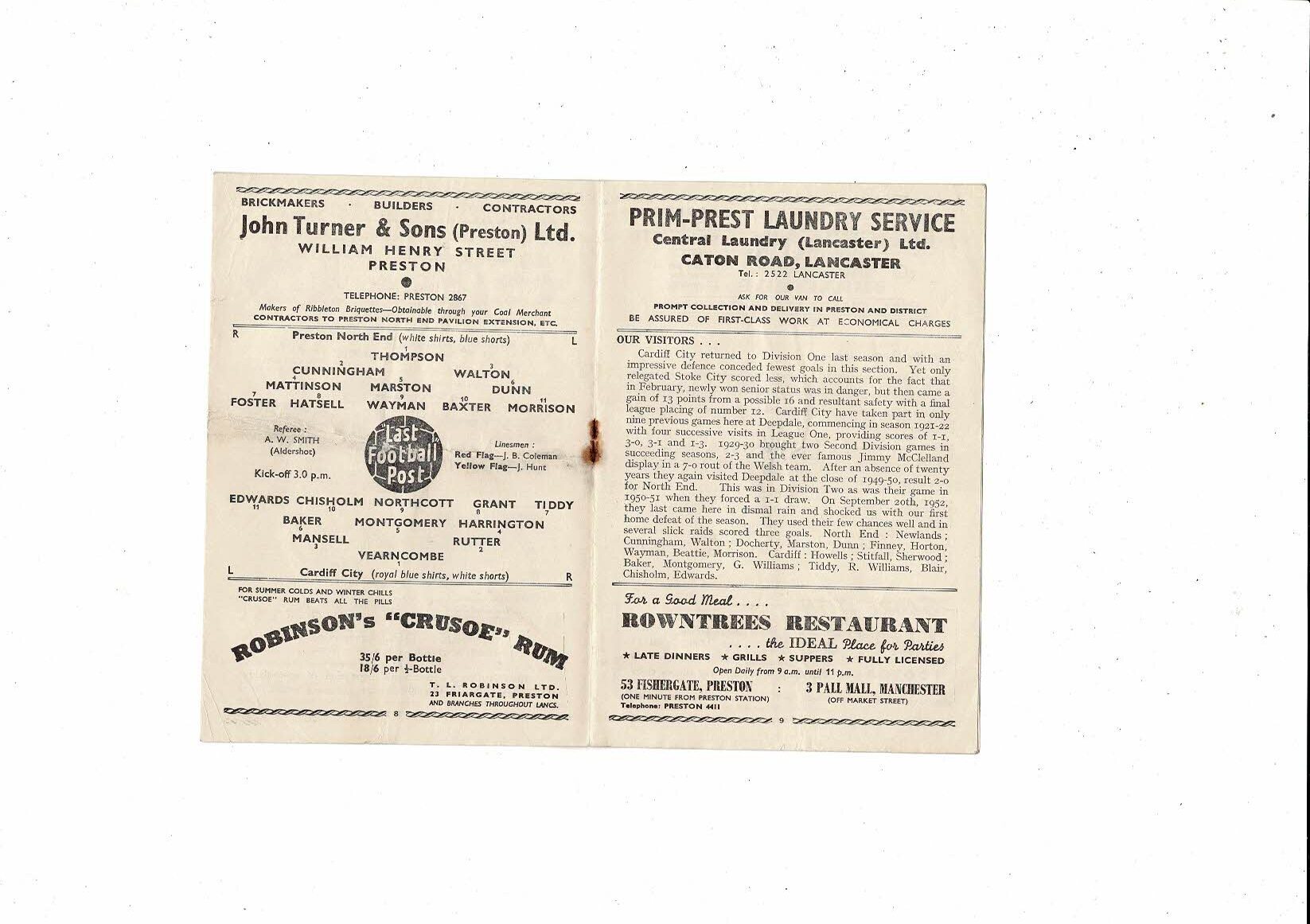 1953/54 Preston v Cardiff City Football Programme