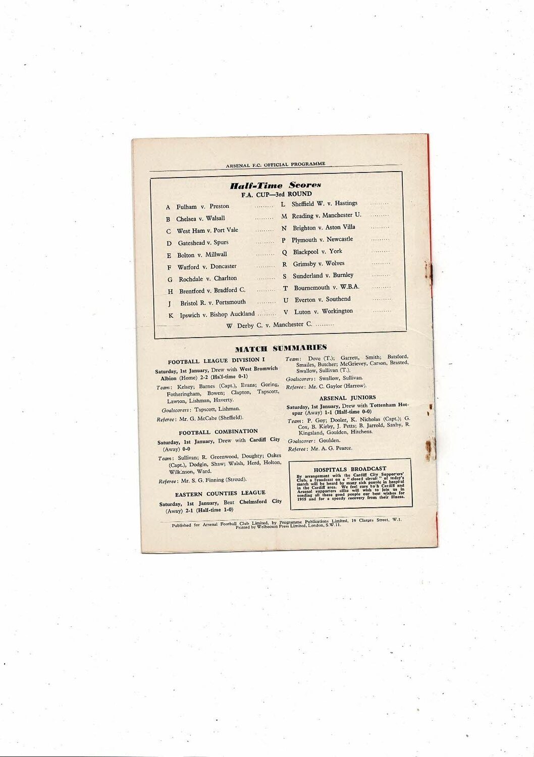 1954/55 Arsenal v Cardiff City FA Cup Football Programme