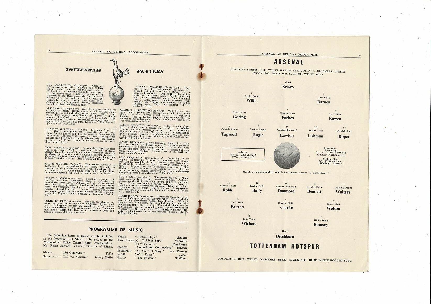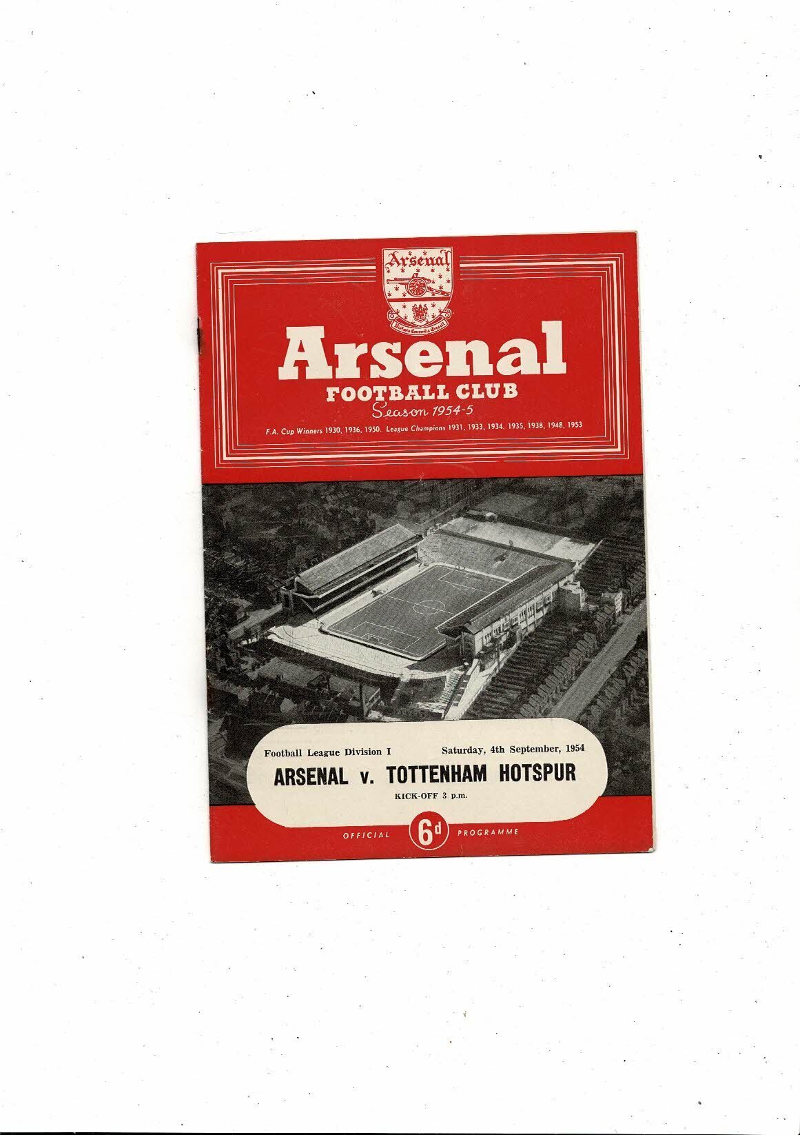 1954/55 Arsenal v Tottenham Hotspur Football Programme