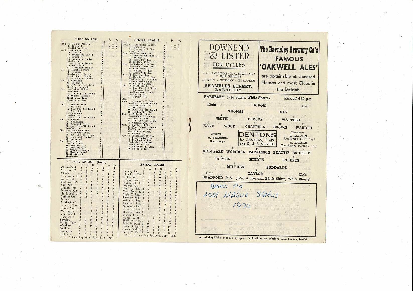 1954/55 Barnsley v Bradford Park Avenue Football Programme