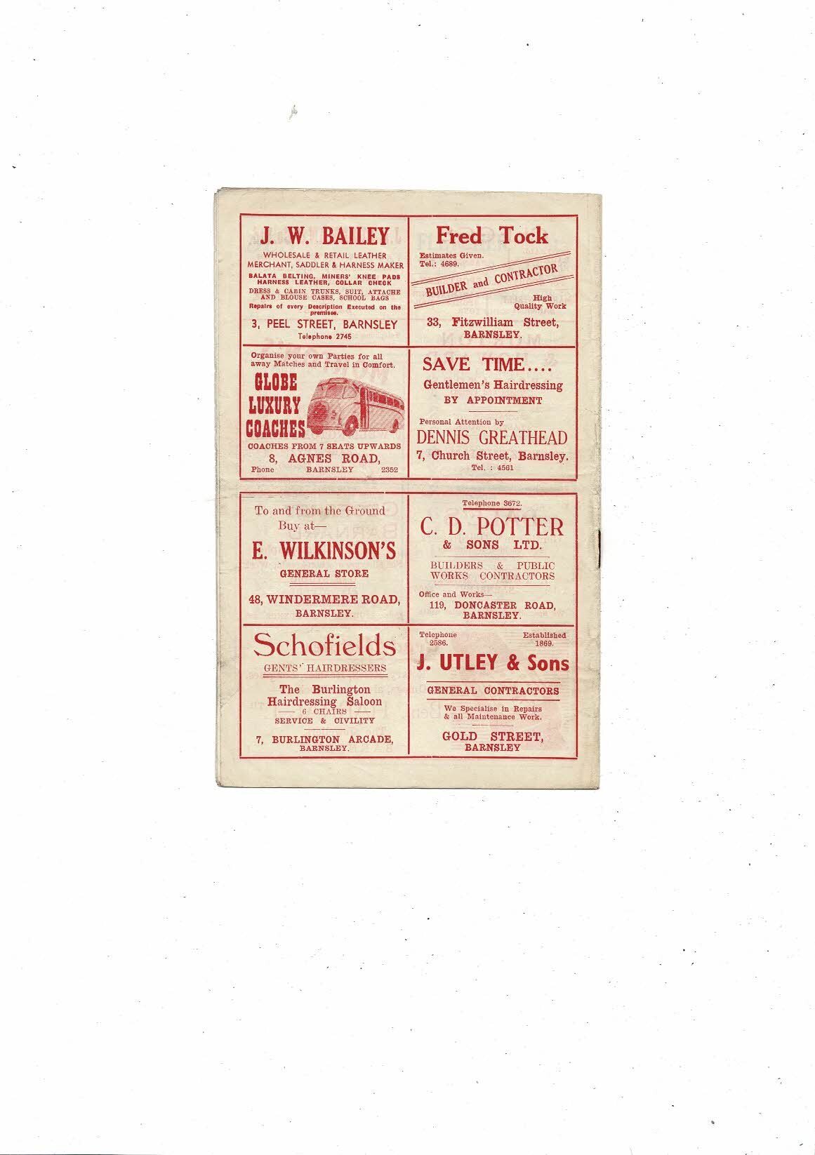 1954/55 Barnsley v Tranmere Rovers Football Programme