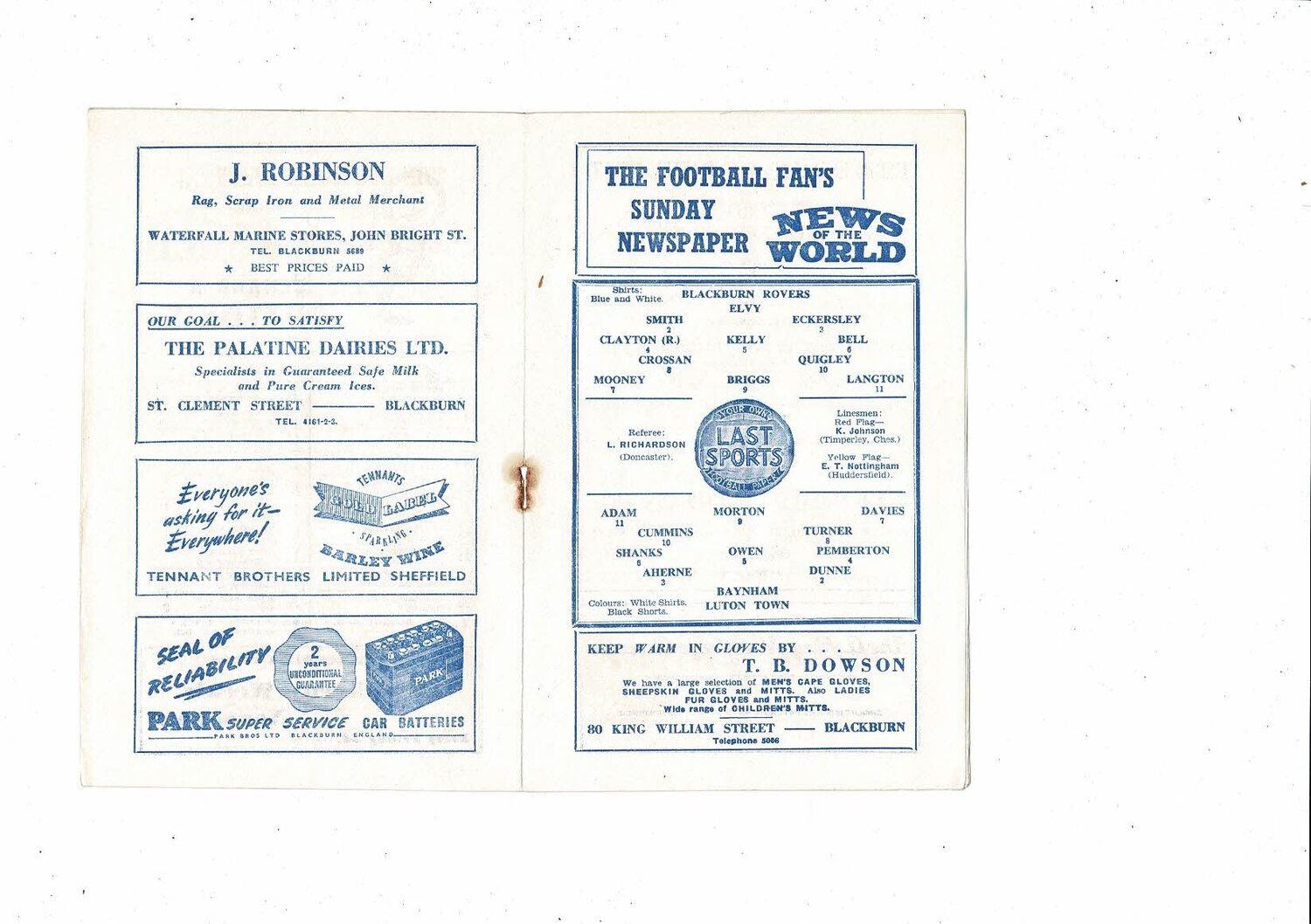 1954/55 Blackburn Rovers v Luton Town Football Programme