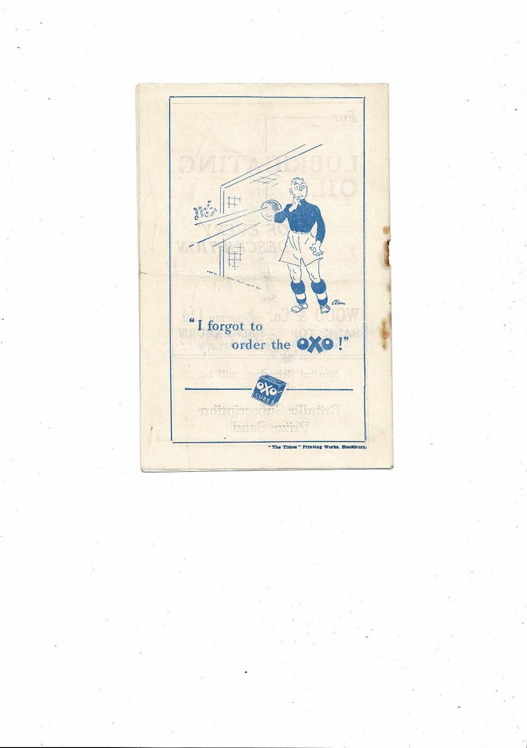 This original Football Programme is creased also has fold with some staining, tiny nic on spine & hole from missing rusty staple. No handwriting