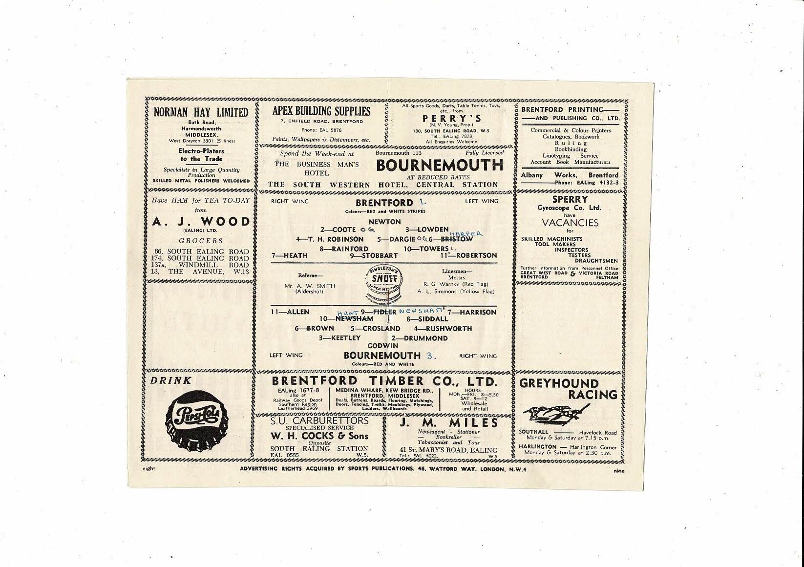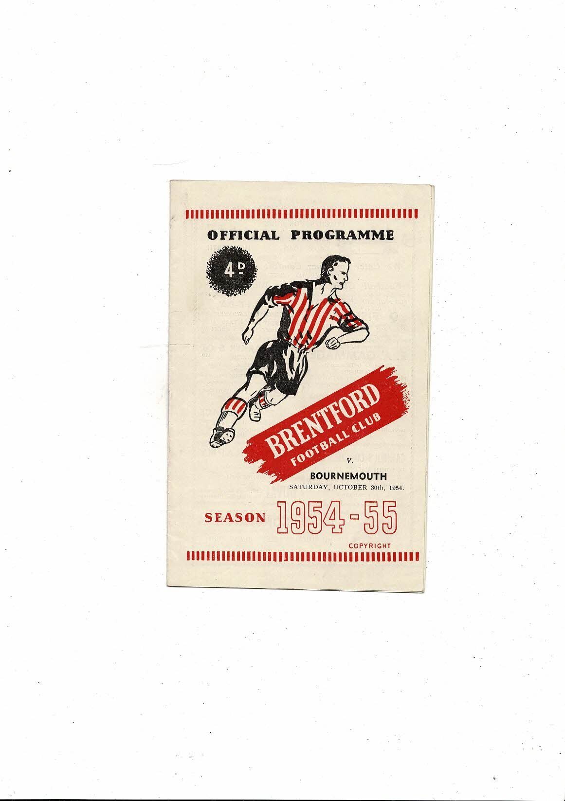 1954/55 Brentford v Bournemouth Football Programme