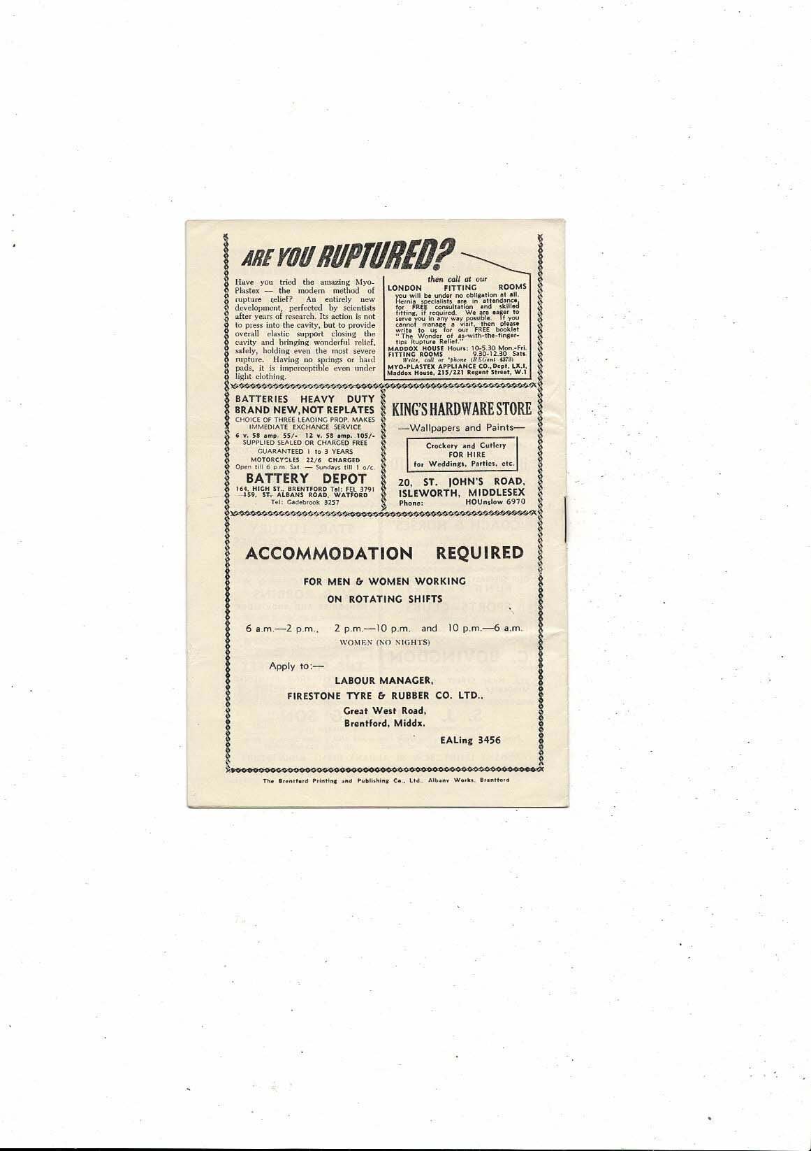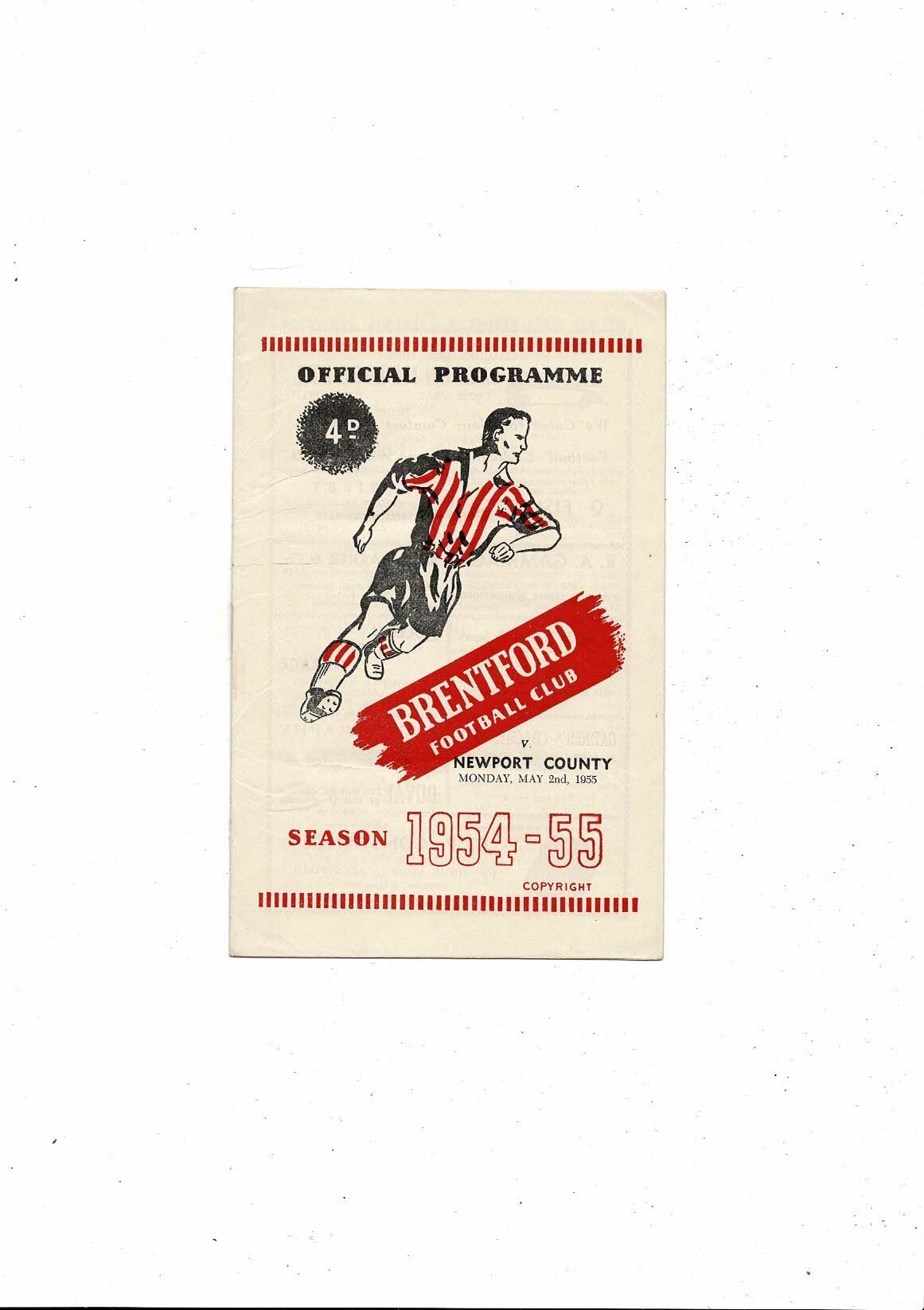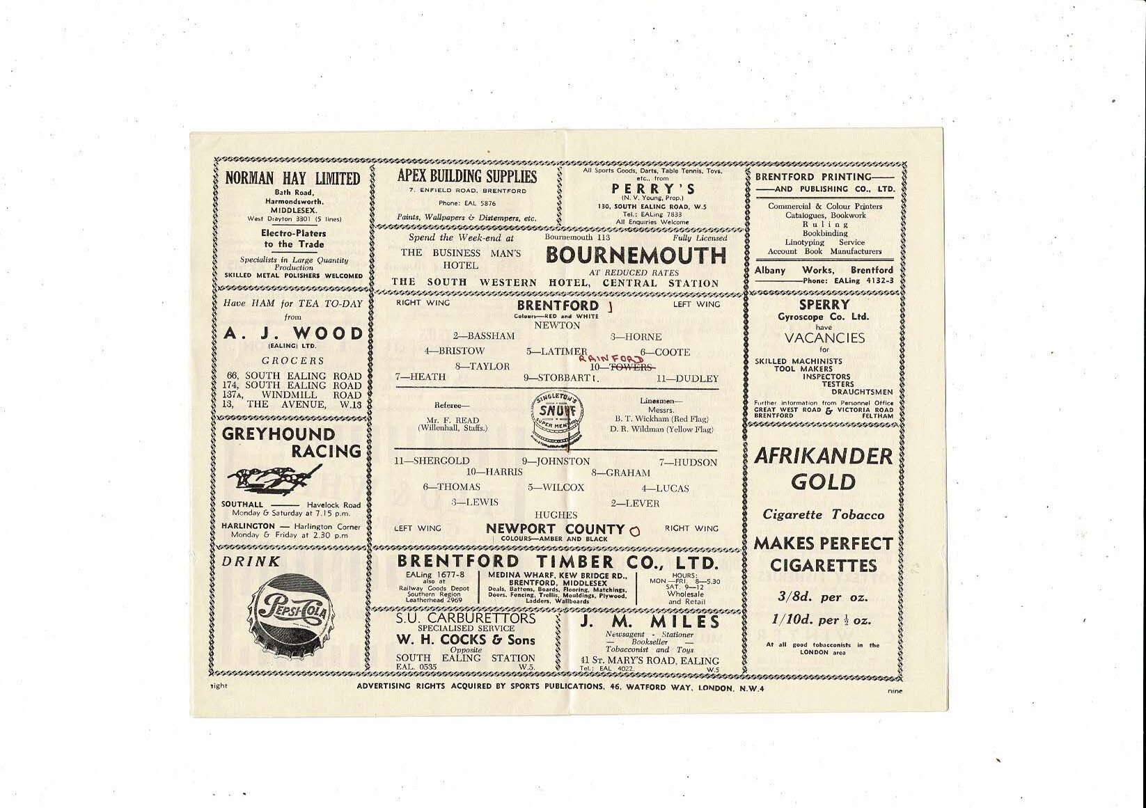 1954/55 Brentford v Newport County Football Programme