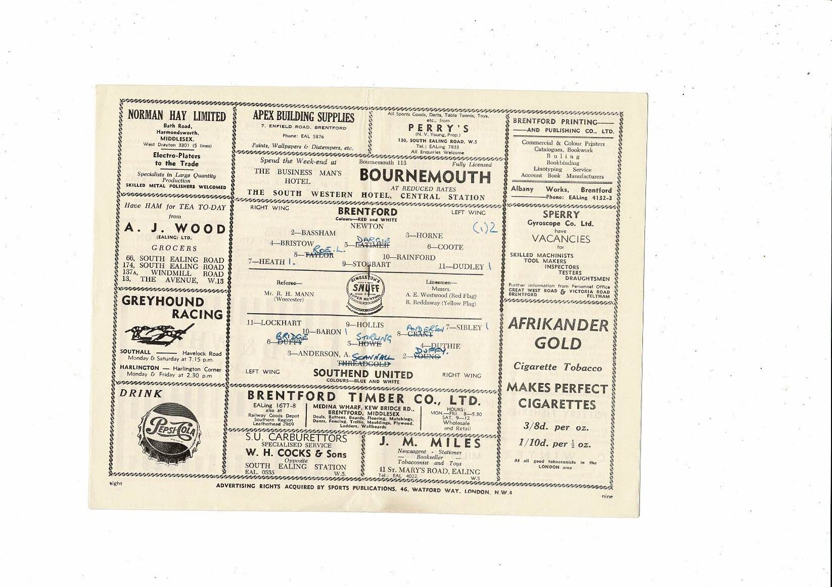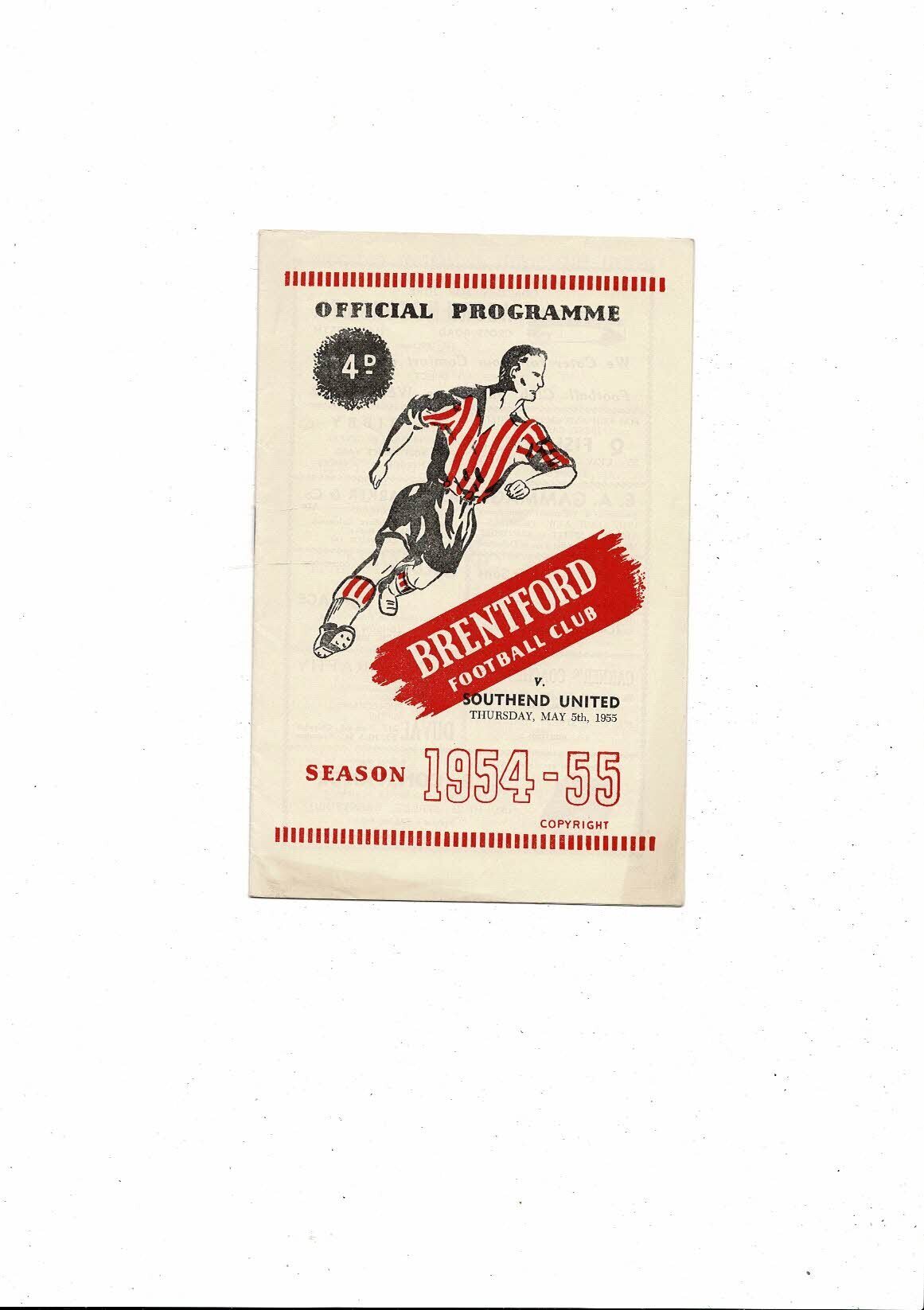 1954/55 Brentford v Southend United Football Programme