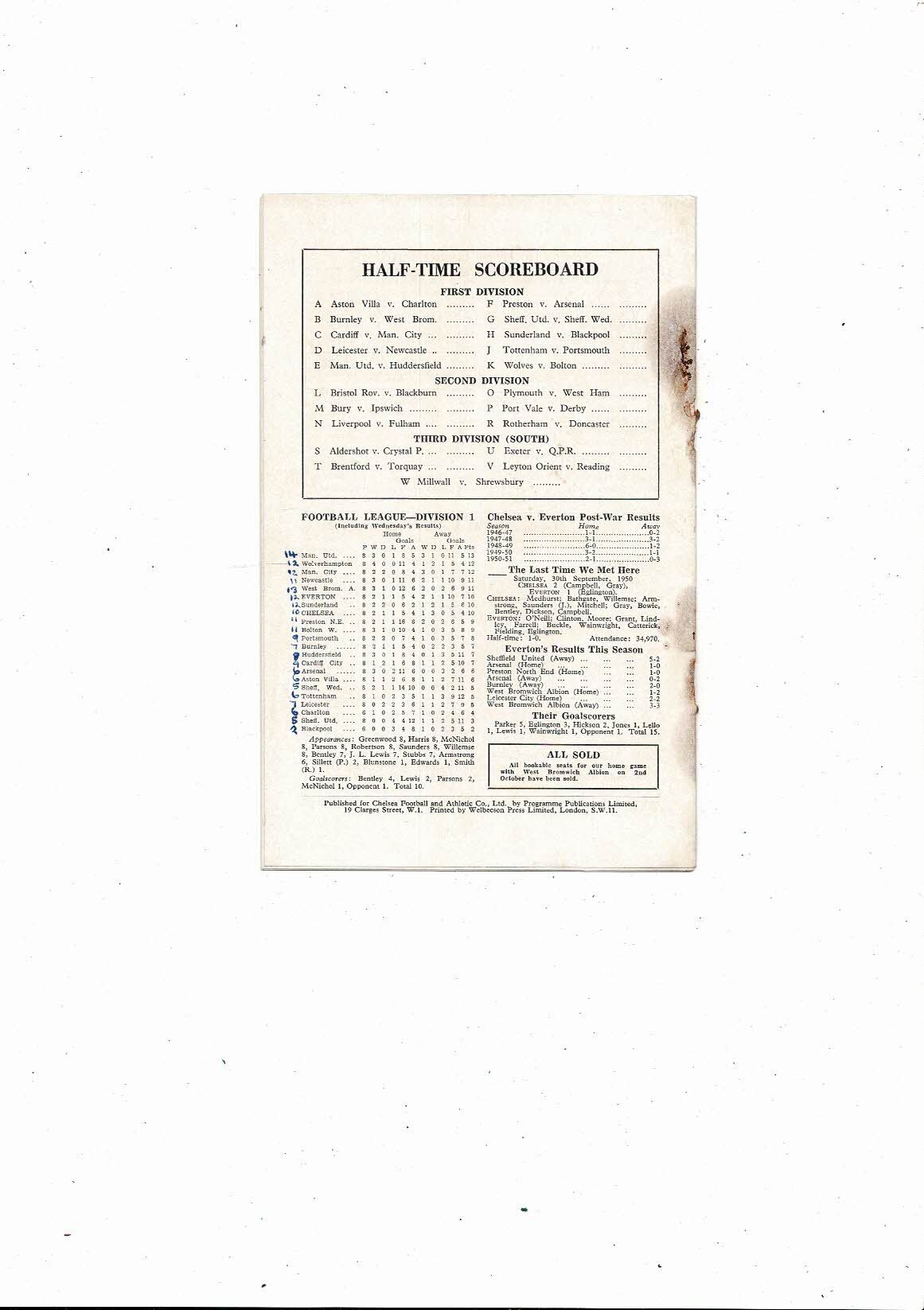 1954/55 Chelsea v Everton Championship Season Football Programme