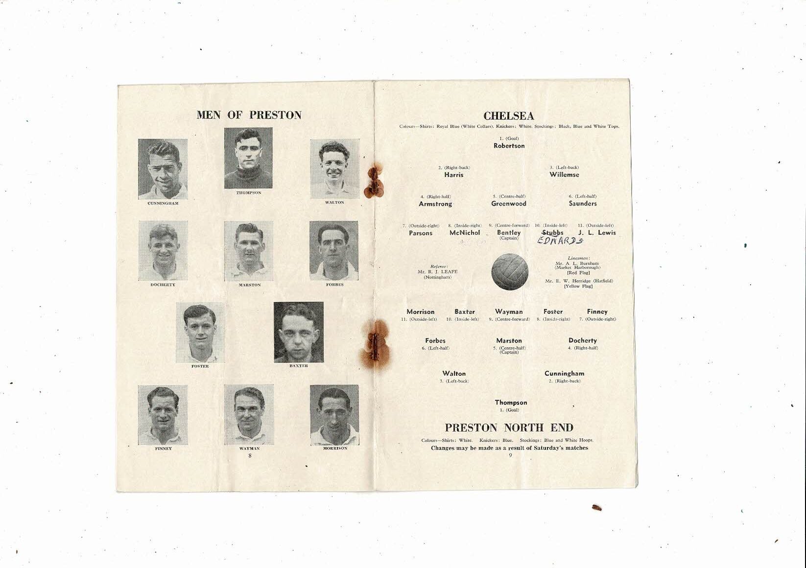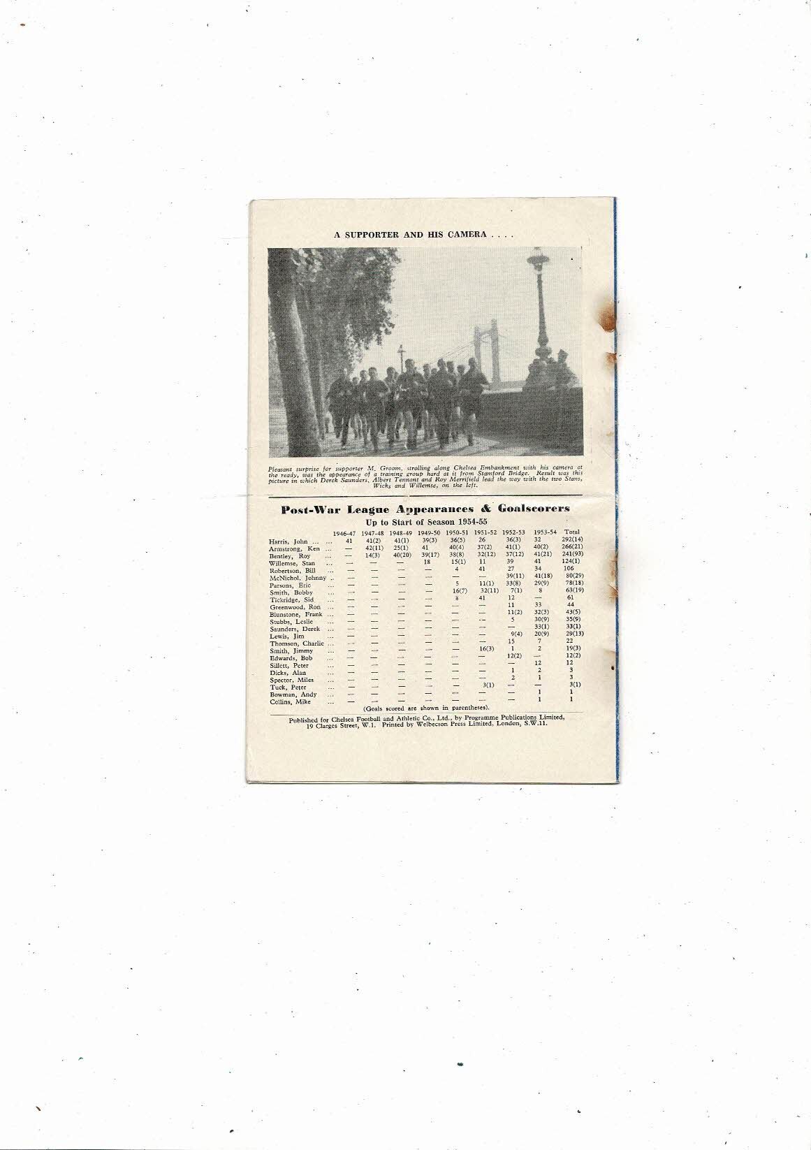 1954/55 Chelsea v Preston Championship Season Football Programme