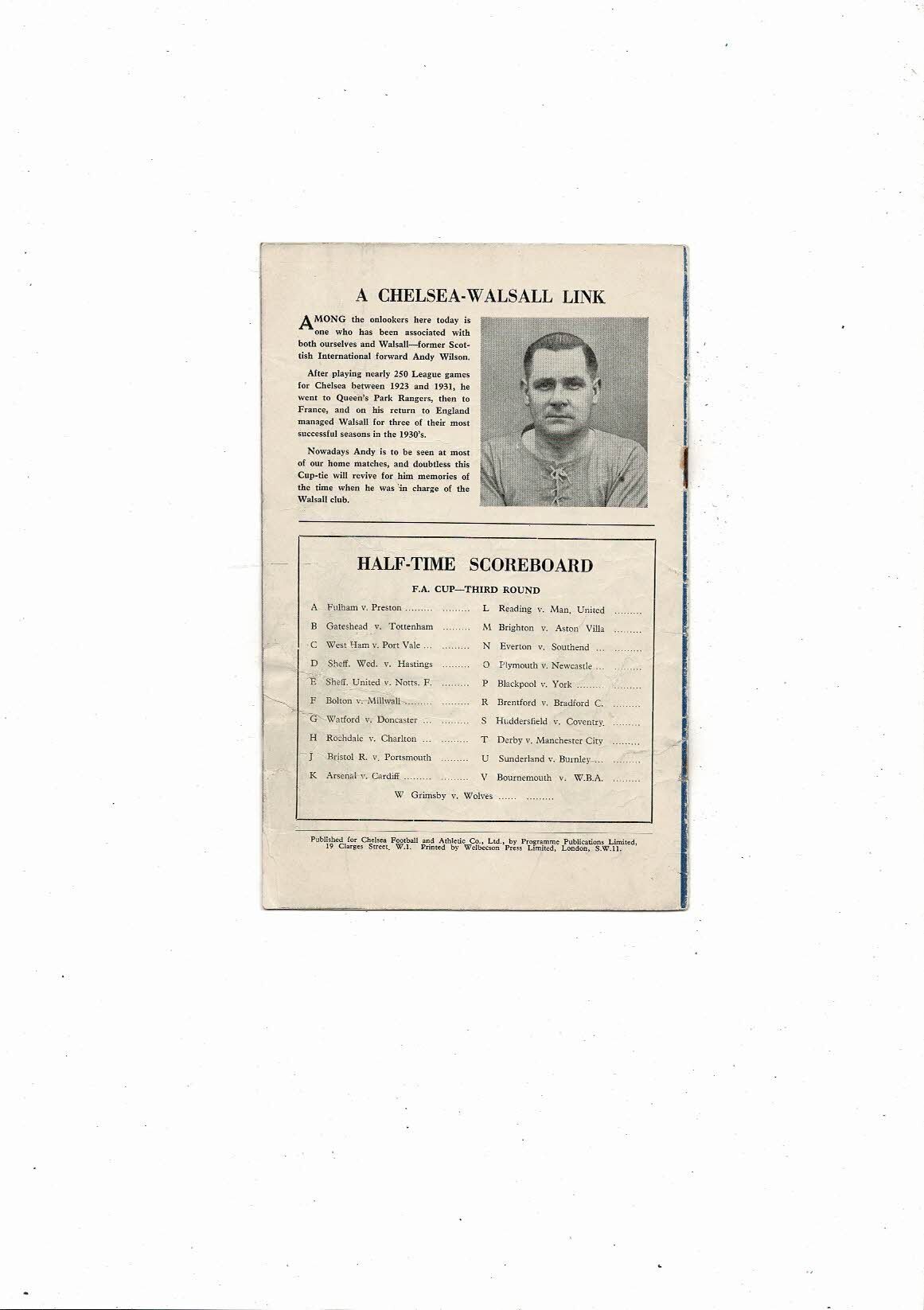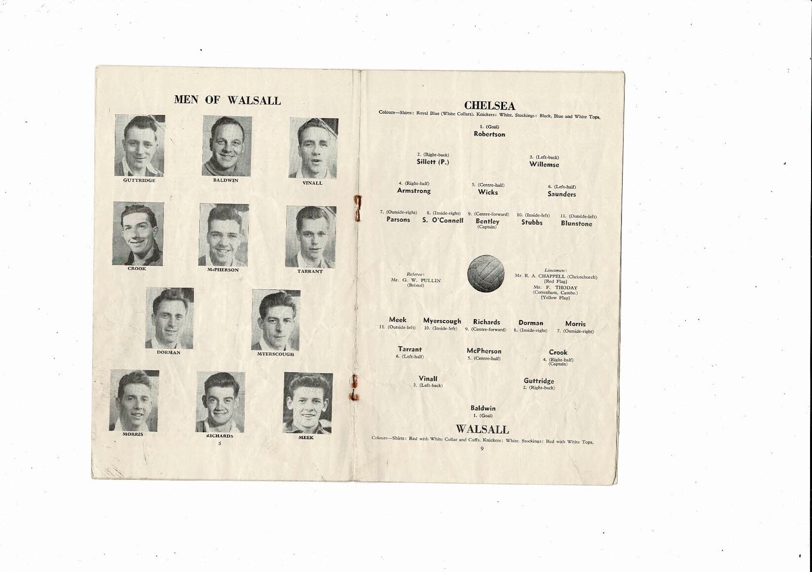 1954/55 Chelsea v Walsall Championship Season FA Cup Football Programme