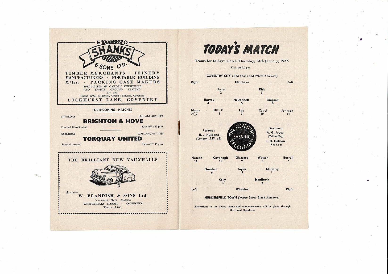 1954/55 Coventry City v Huddersfield Town Football Programme