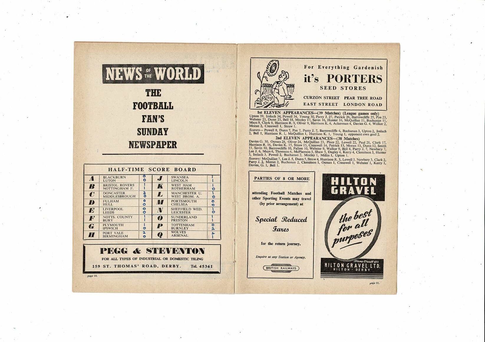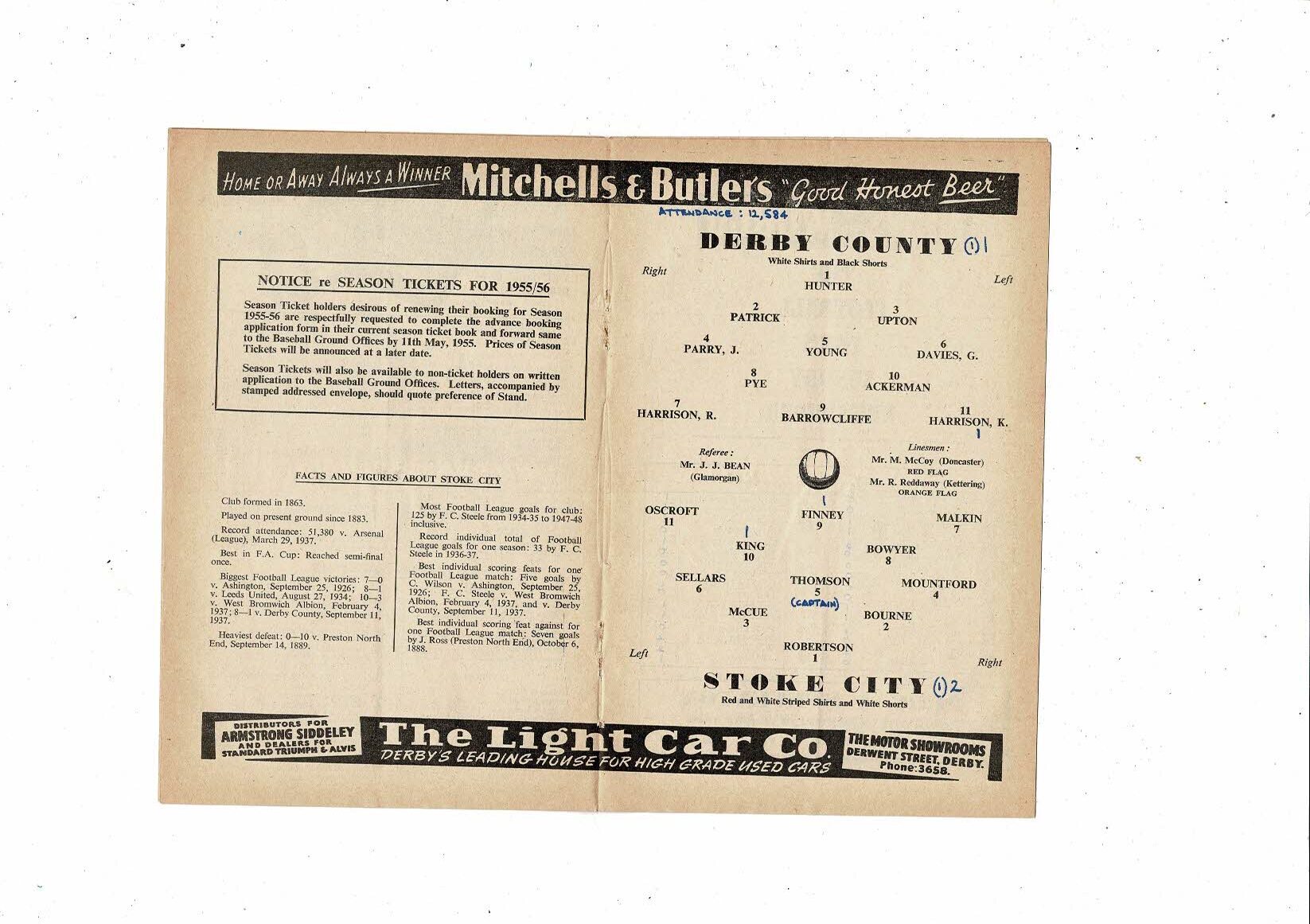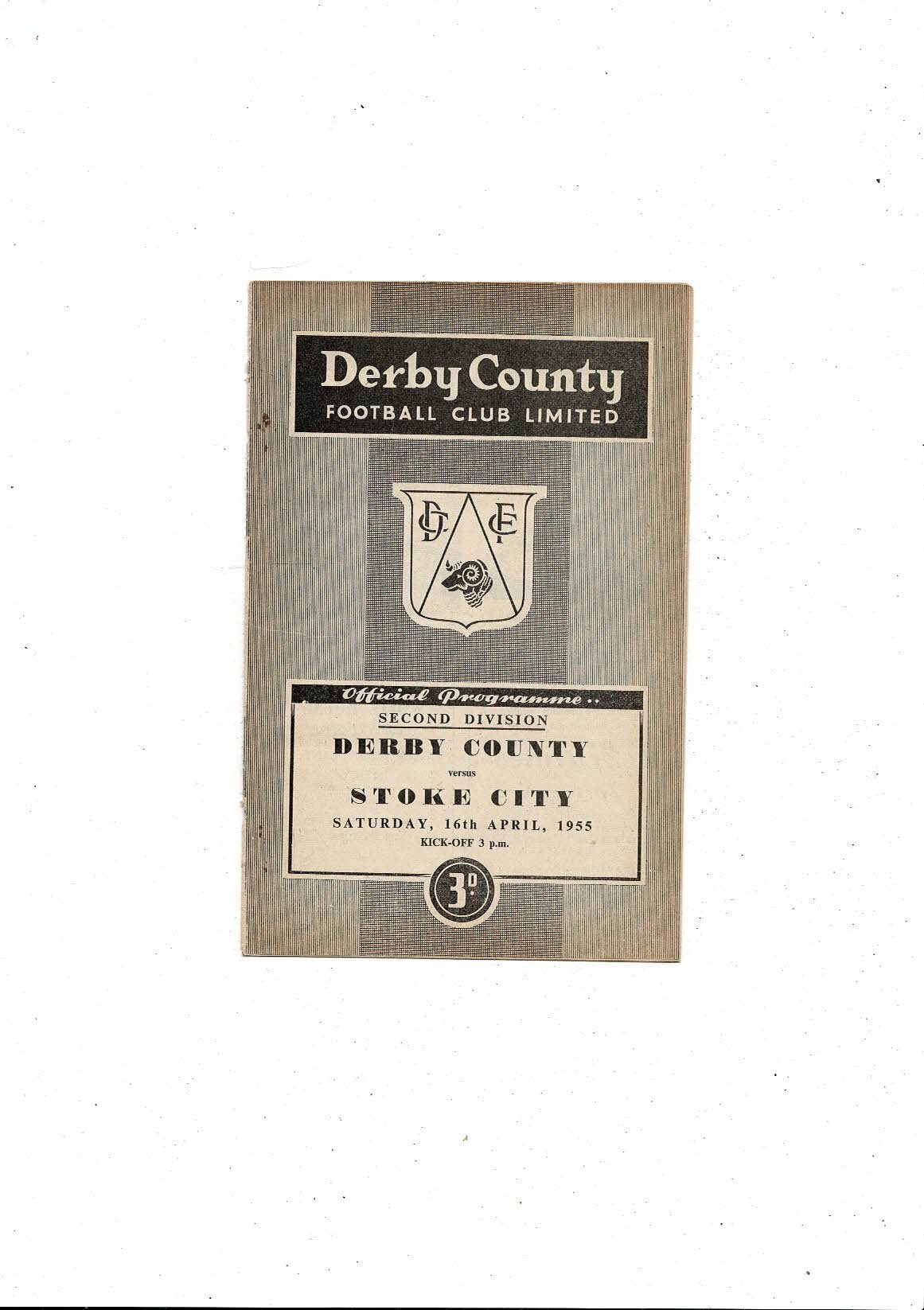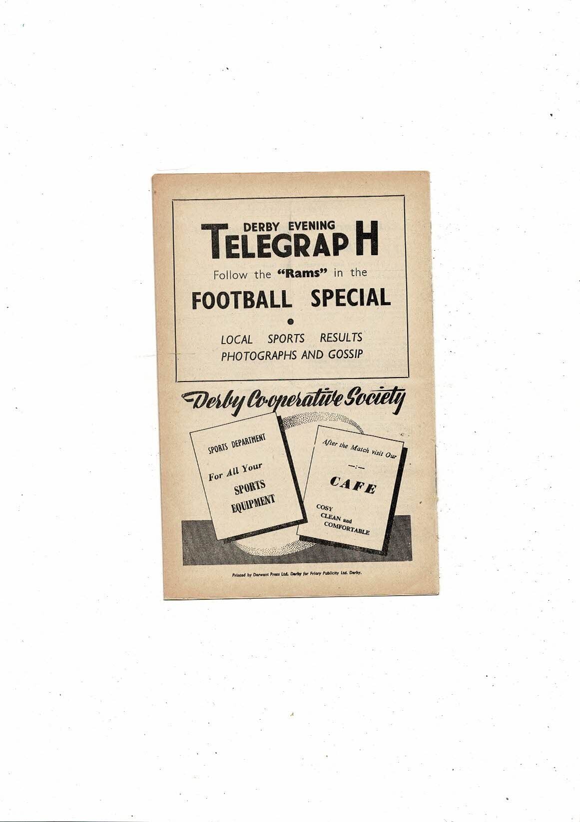 1954/55 Derby County v Stoke City Football Programme