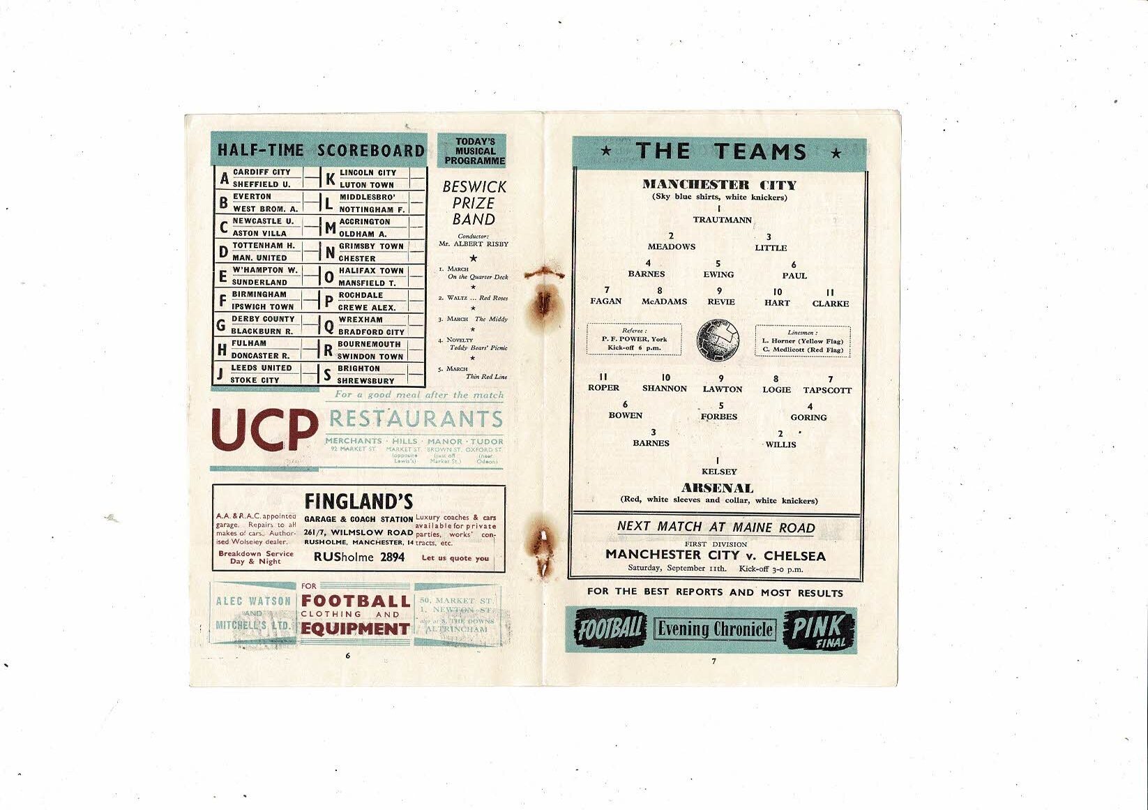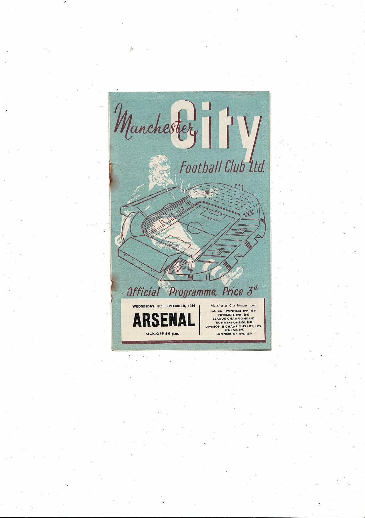 1954/55 Manchester City v Arsenal Football Programme