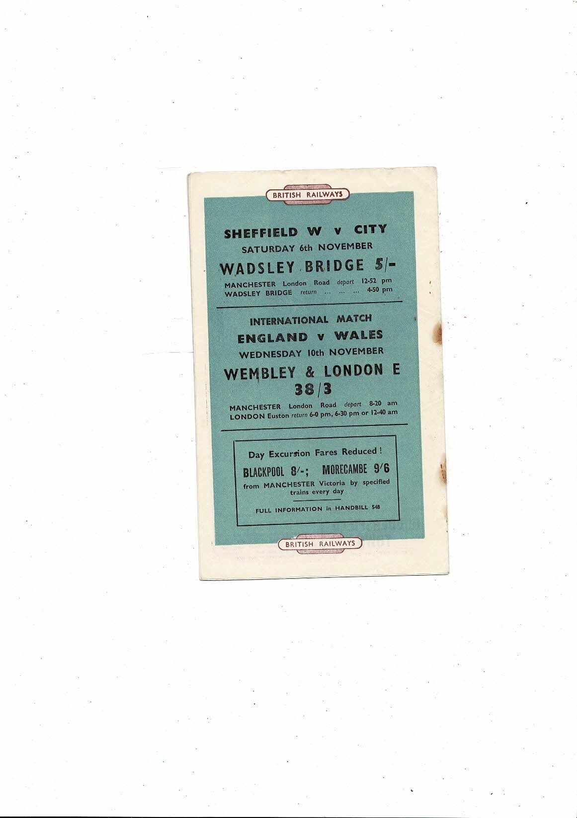 This Original Football Programme is creased also has a fold with some staining, holes where staples removed & small tear on spine. No handwriting. Please see scans.