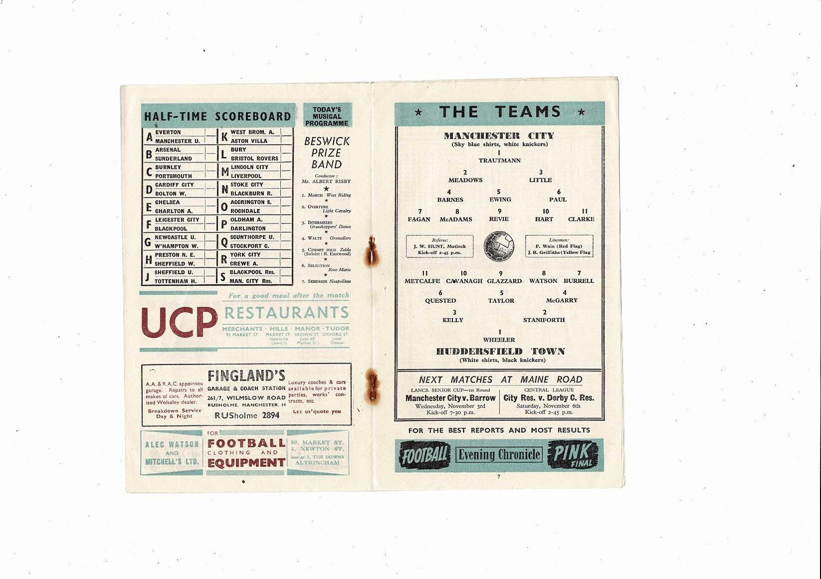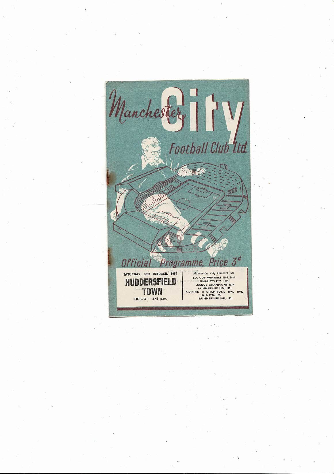 1954/55 Manchester City v Huddersfield Town Football Programme