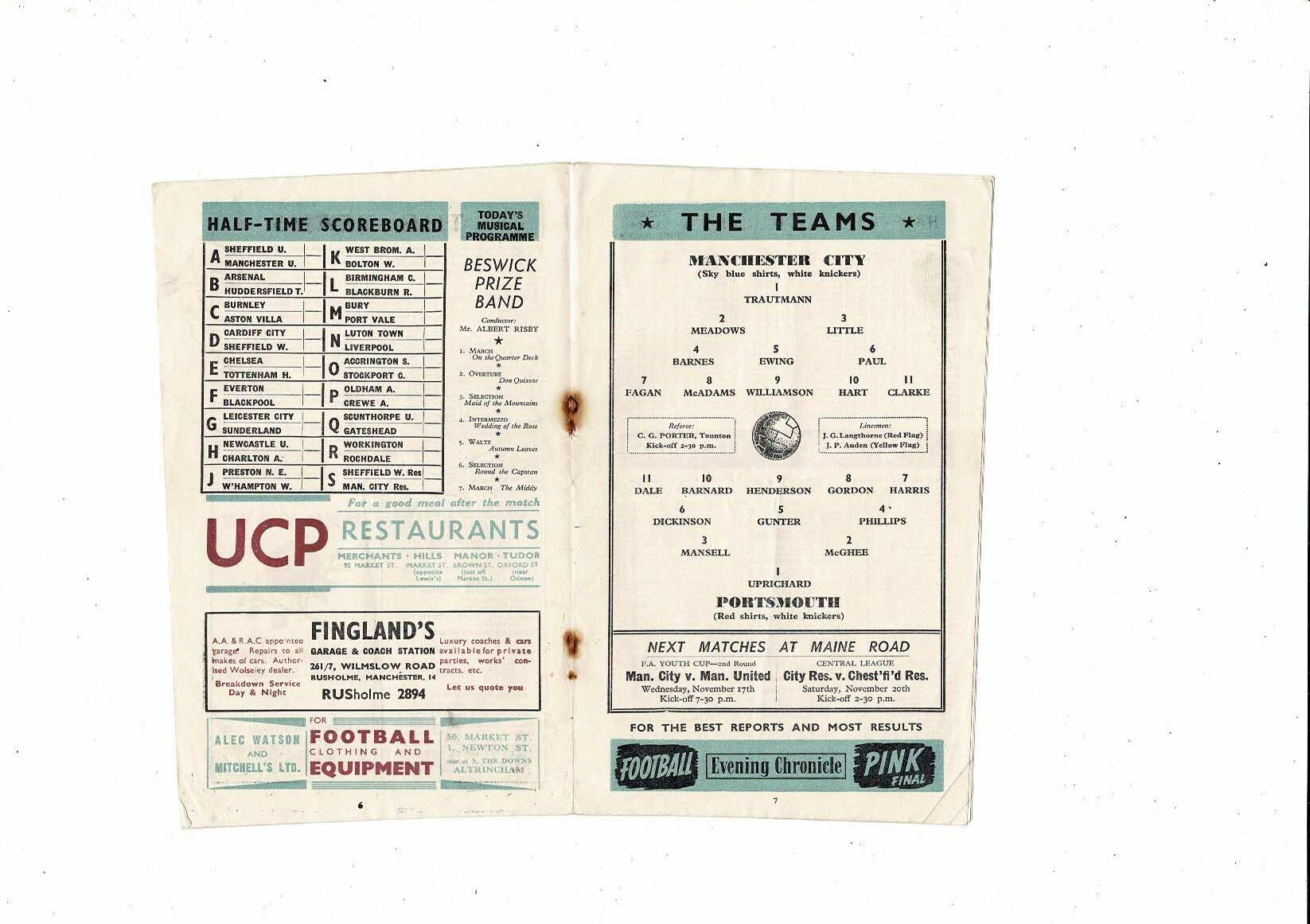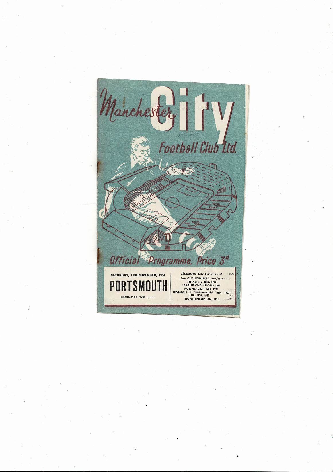 1954/55 Manchester City v Portsmouth Football Programme