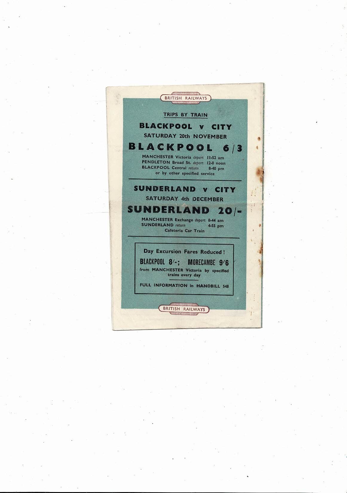 This Original Football Programme is creased also has a fold with some staining, rusty staple the other removed. No handwrititng. Please note this programme was not cut straight at the printers. Please see scans.