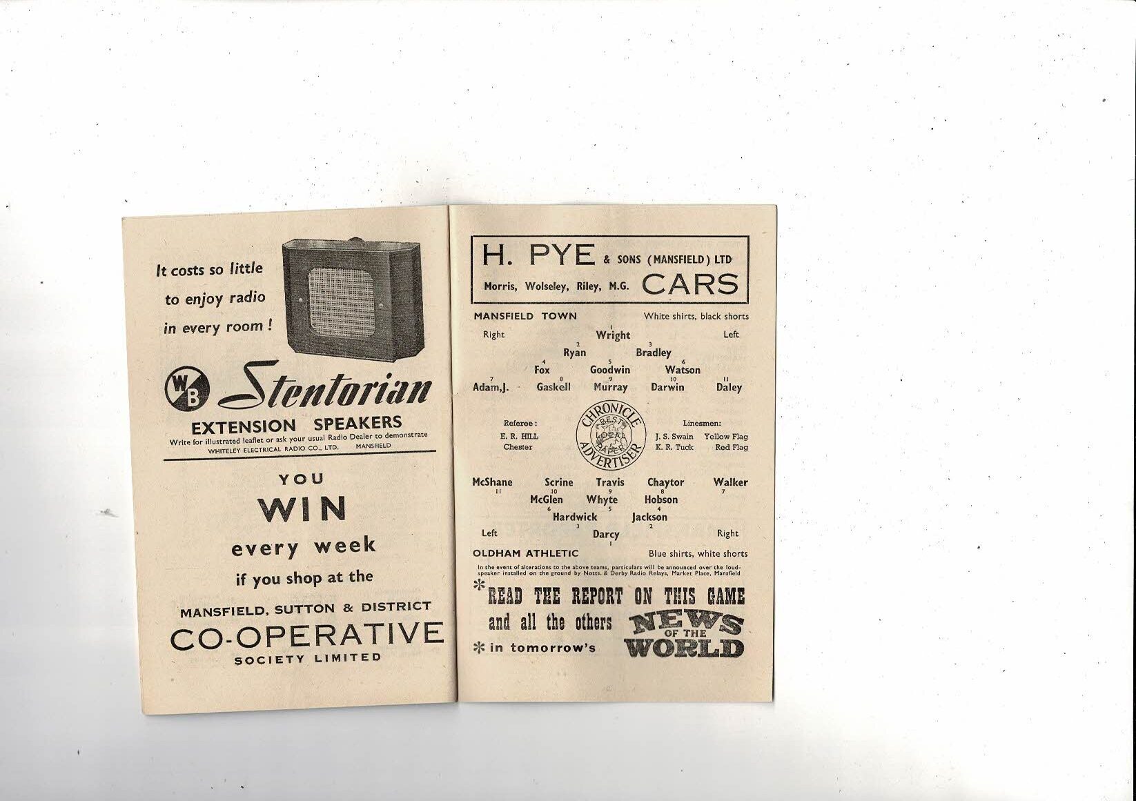 1954/55 Mansfield Town v Oldham Athletic Football Programme