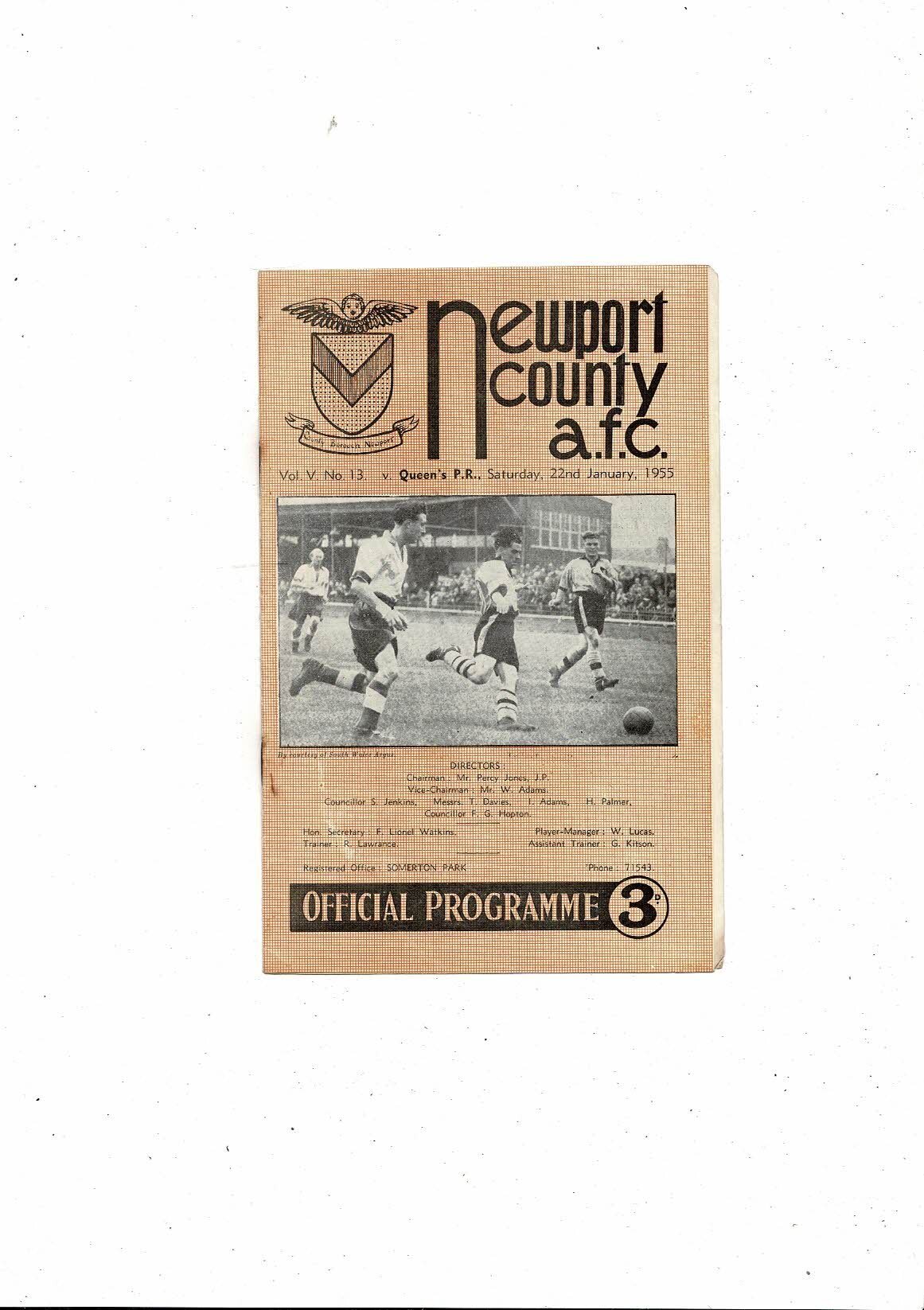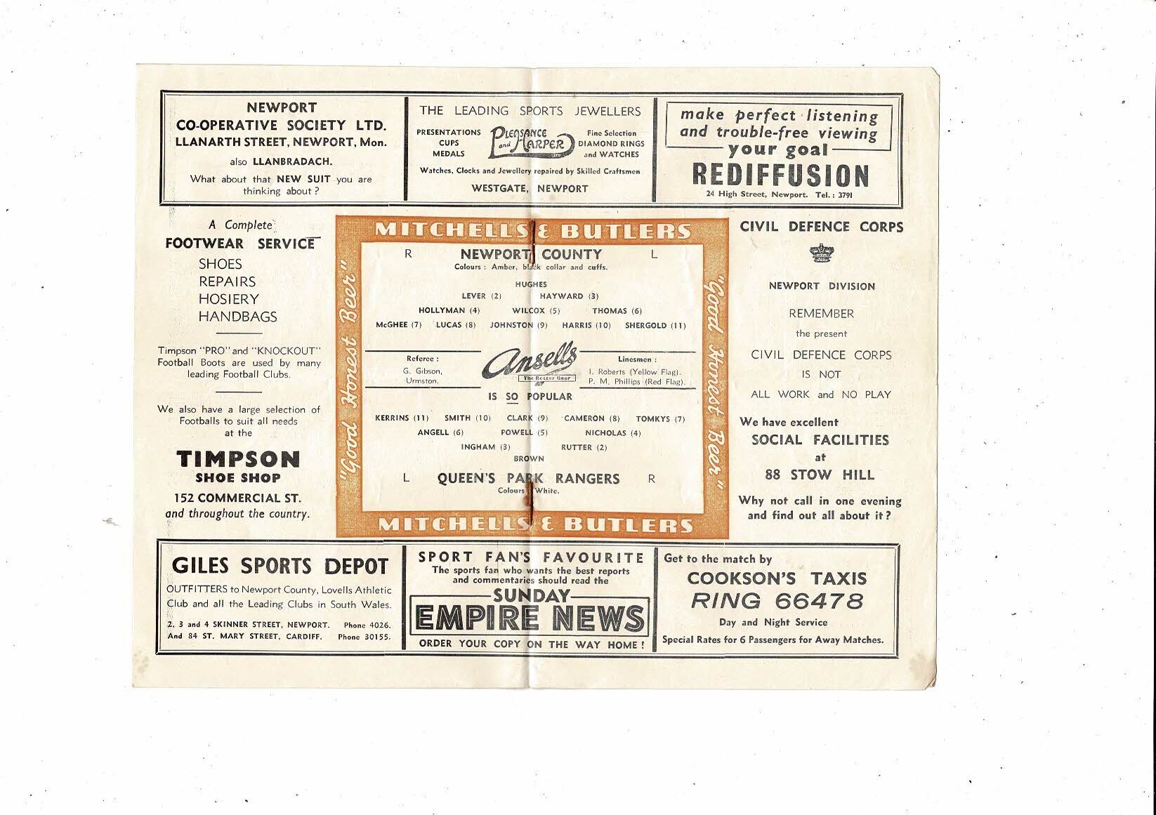 1954/55 Newport County v Football Programme