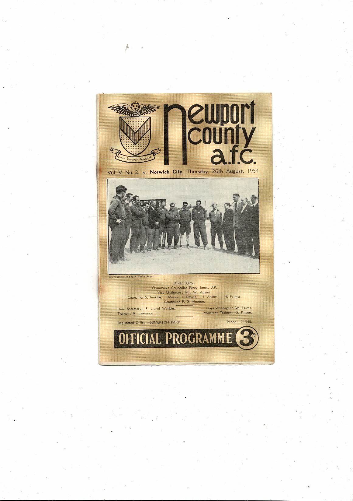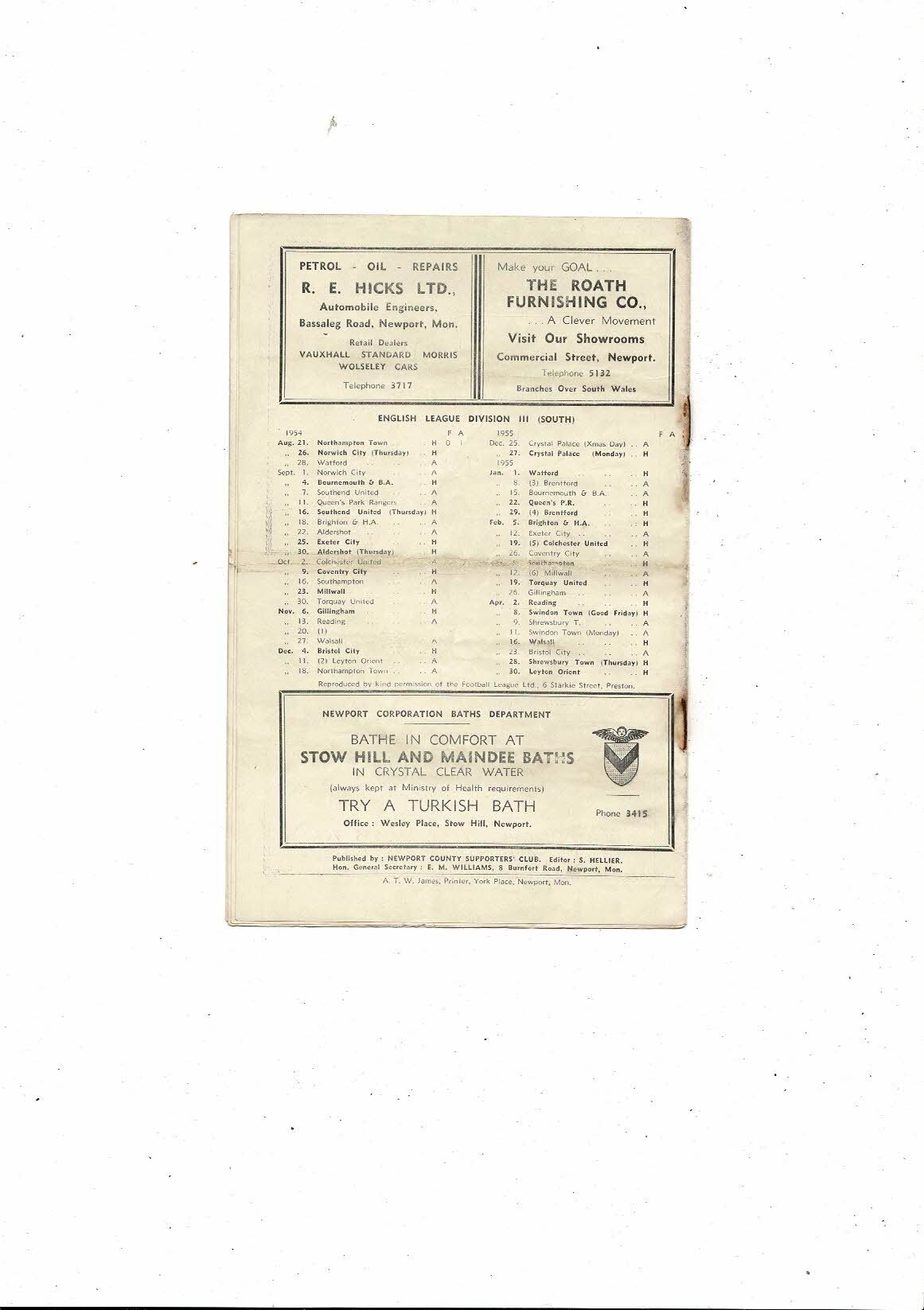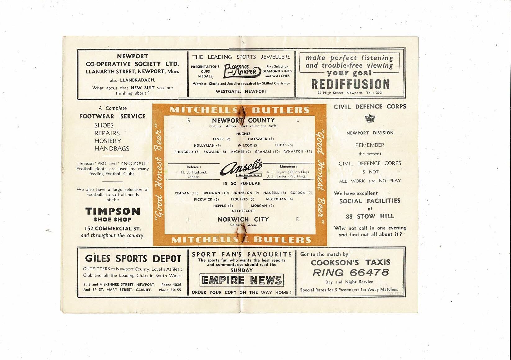 1954/55 Newport County v Northampton Town Football Programme