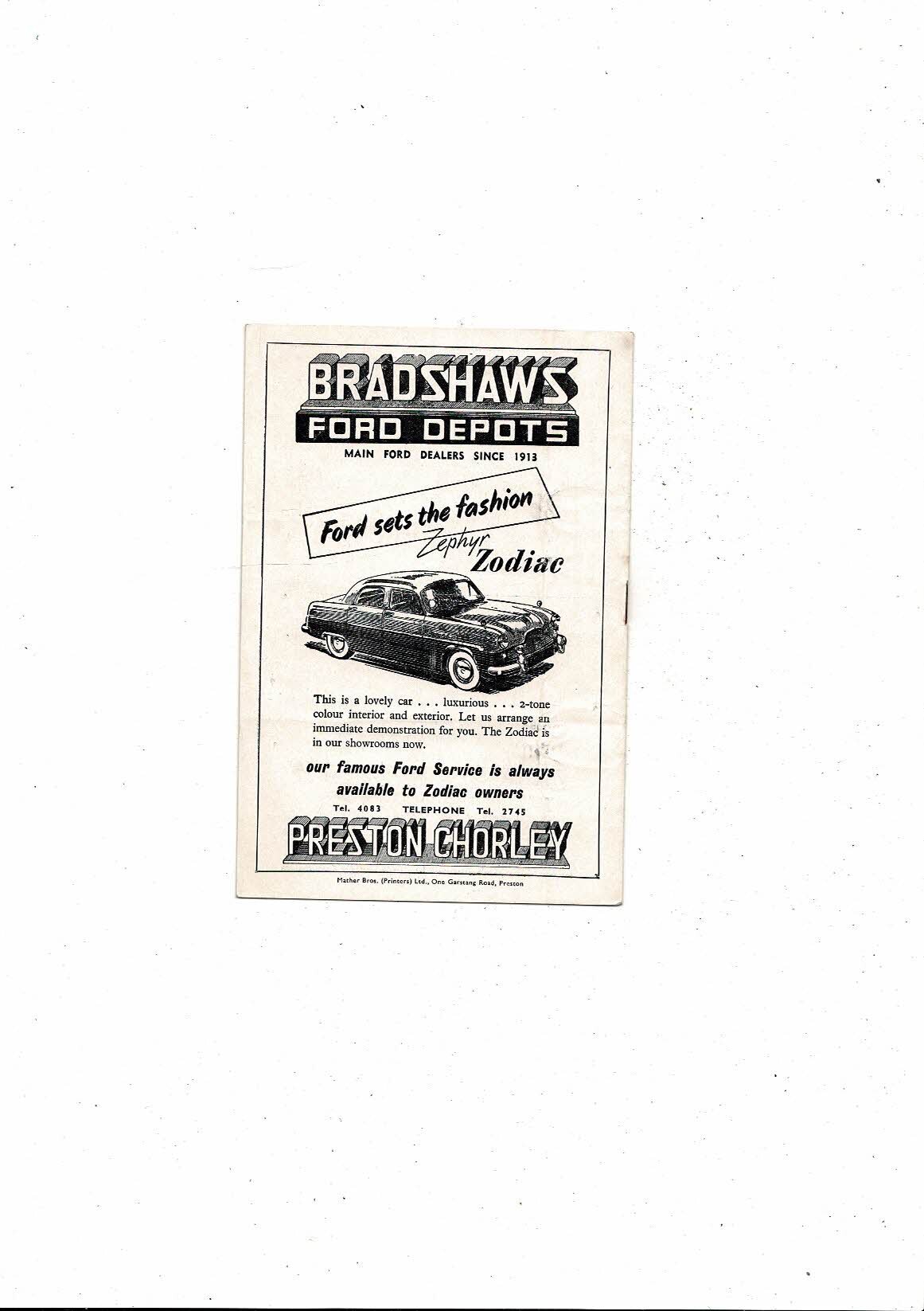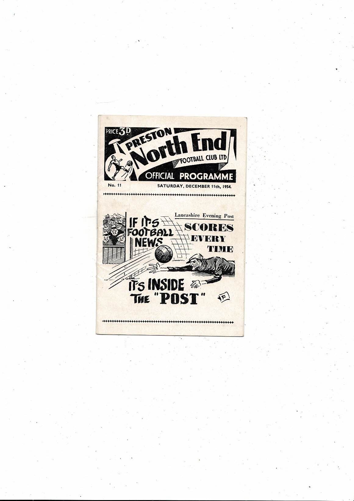 1954/55 Preston v Huddersfield Town Football Programme