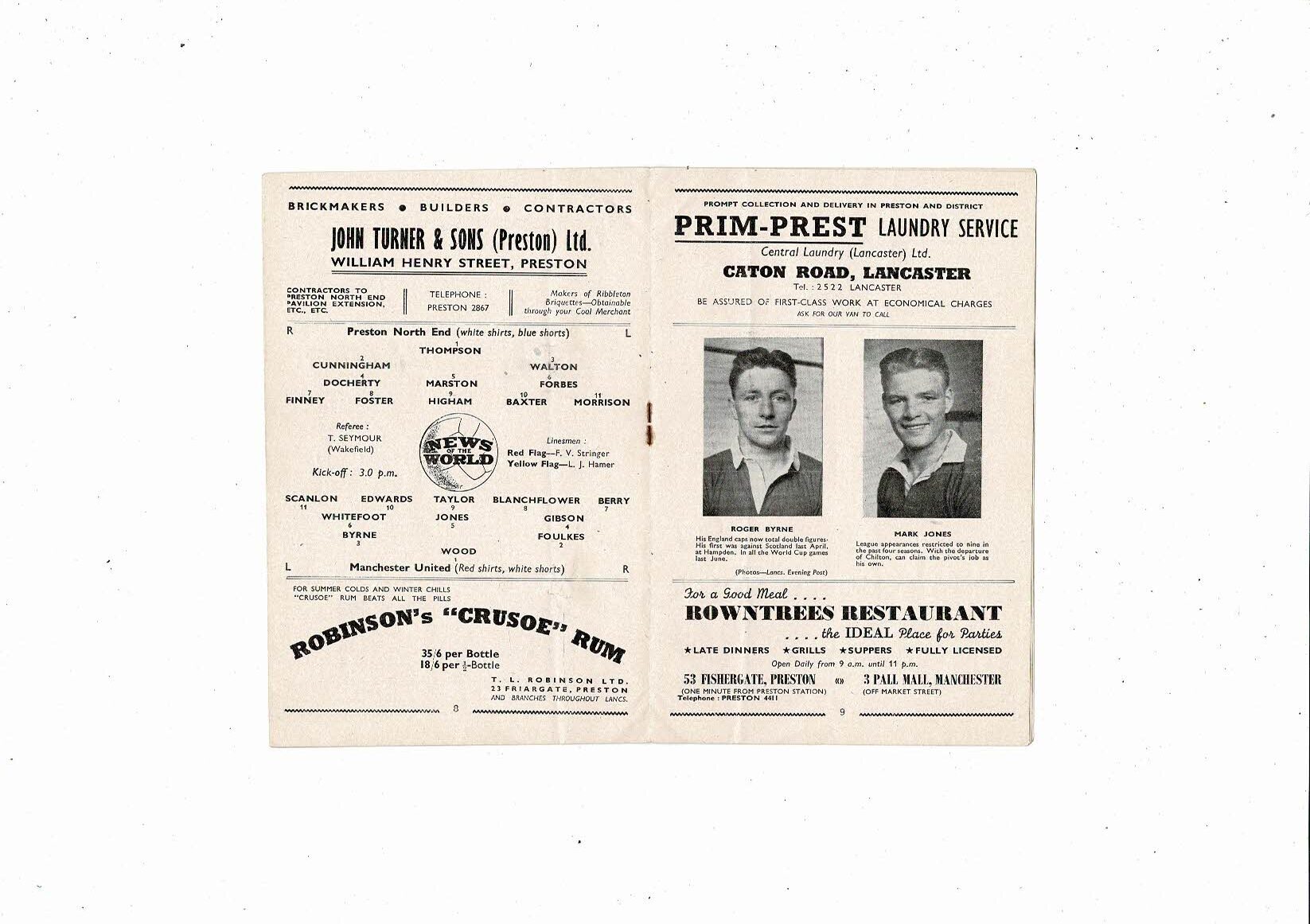 1954/55 Preston v Manchester United Football Programme