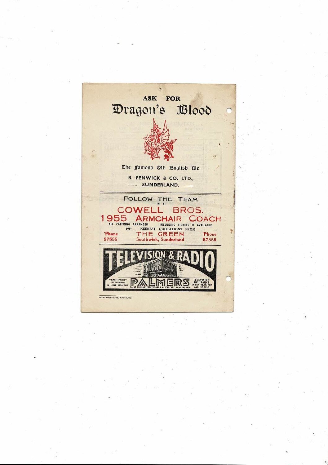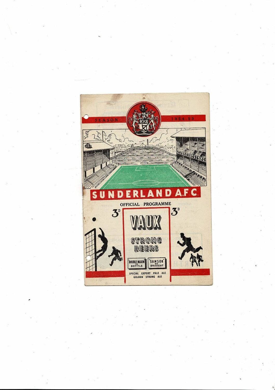 This Original Football Programme is creased also has a fold with some staining, punched holes, pin hole, tiny nic on spine & by rusty staple. No handwriting. Please see scans.
