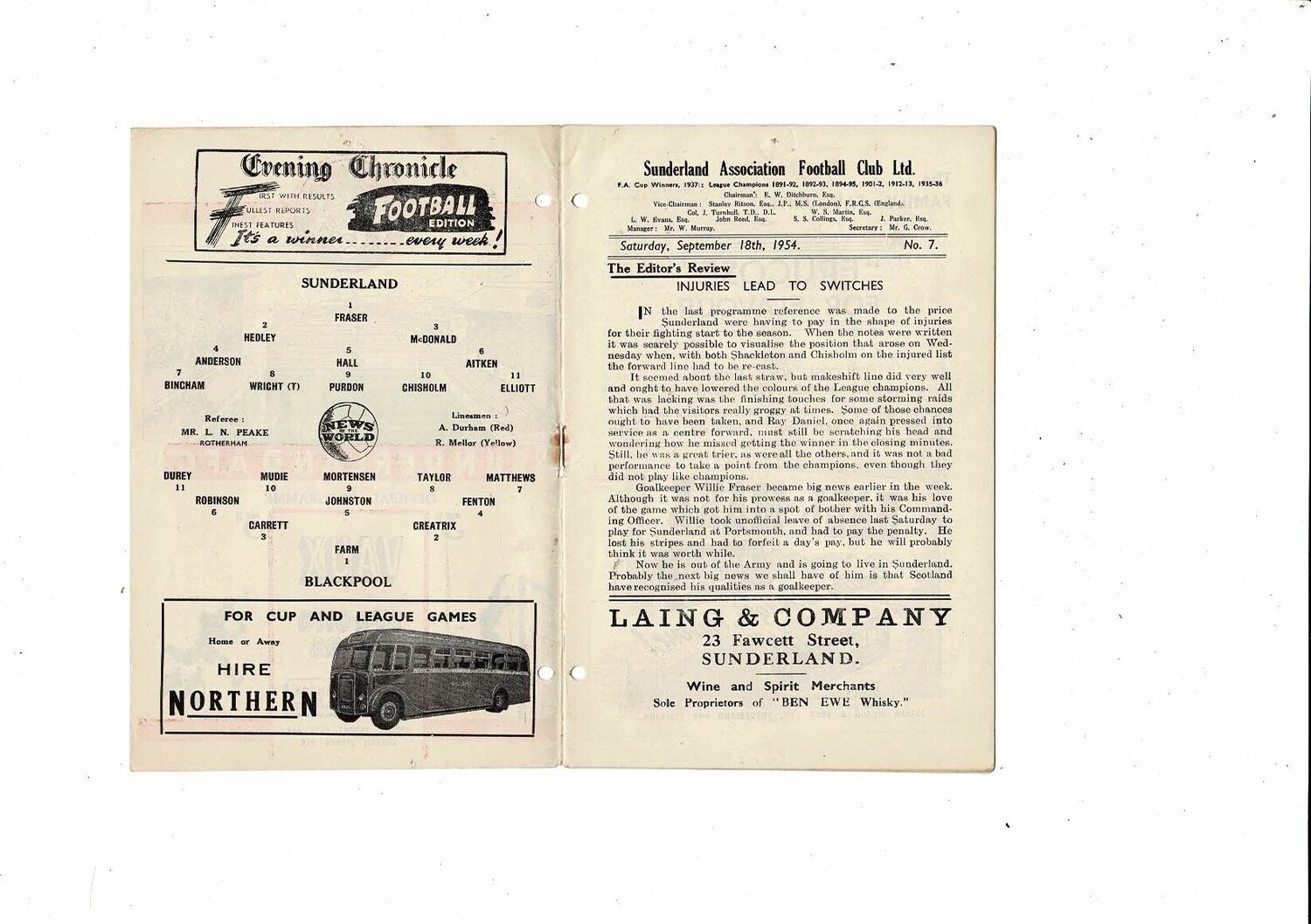1954/55 Sunderland v Blackpool Football Programme