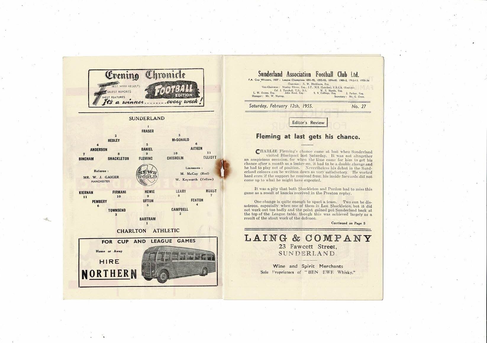 1954/55 Sunderland v Charlton Athletic Football Programme