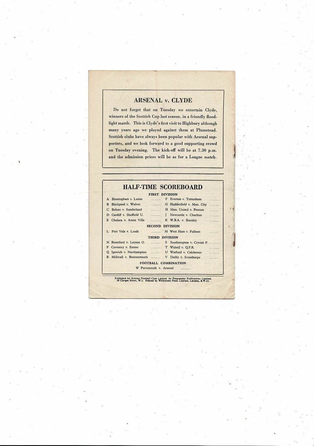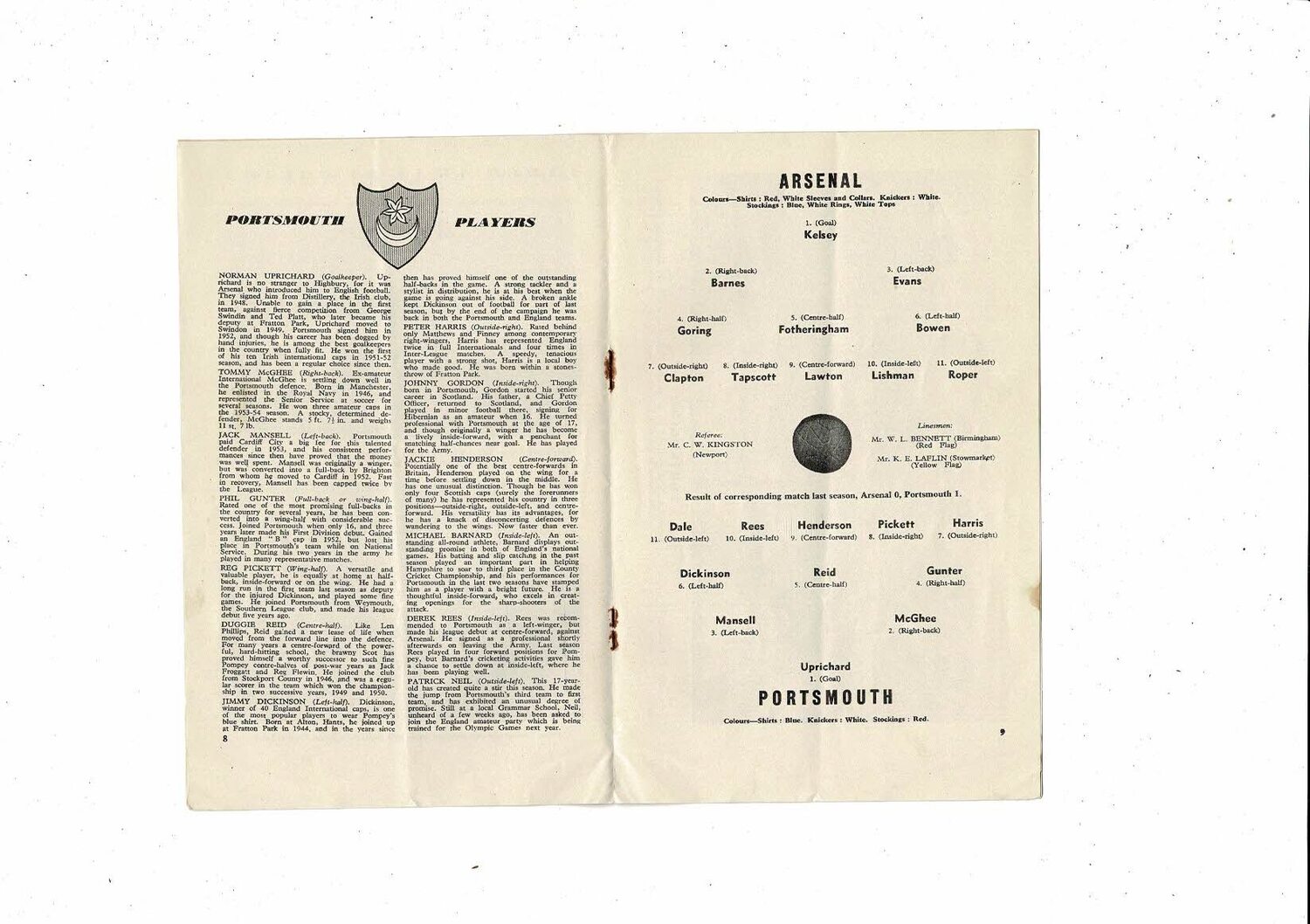 1955/56 Arsenal v Portsmouth Football Programme