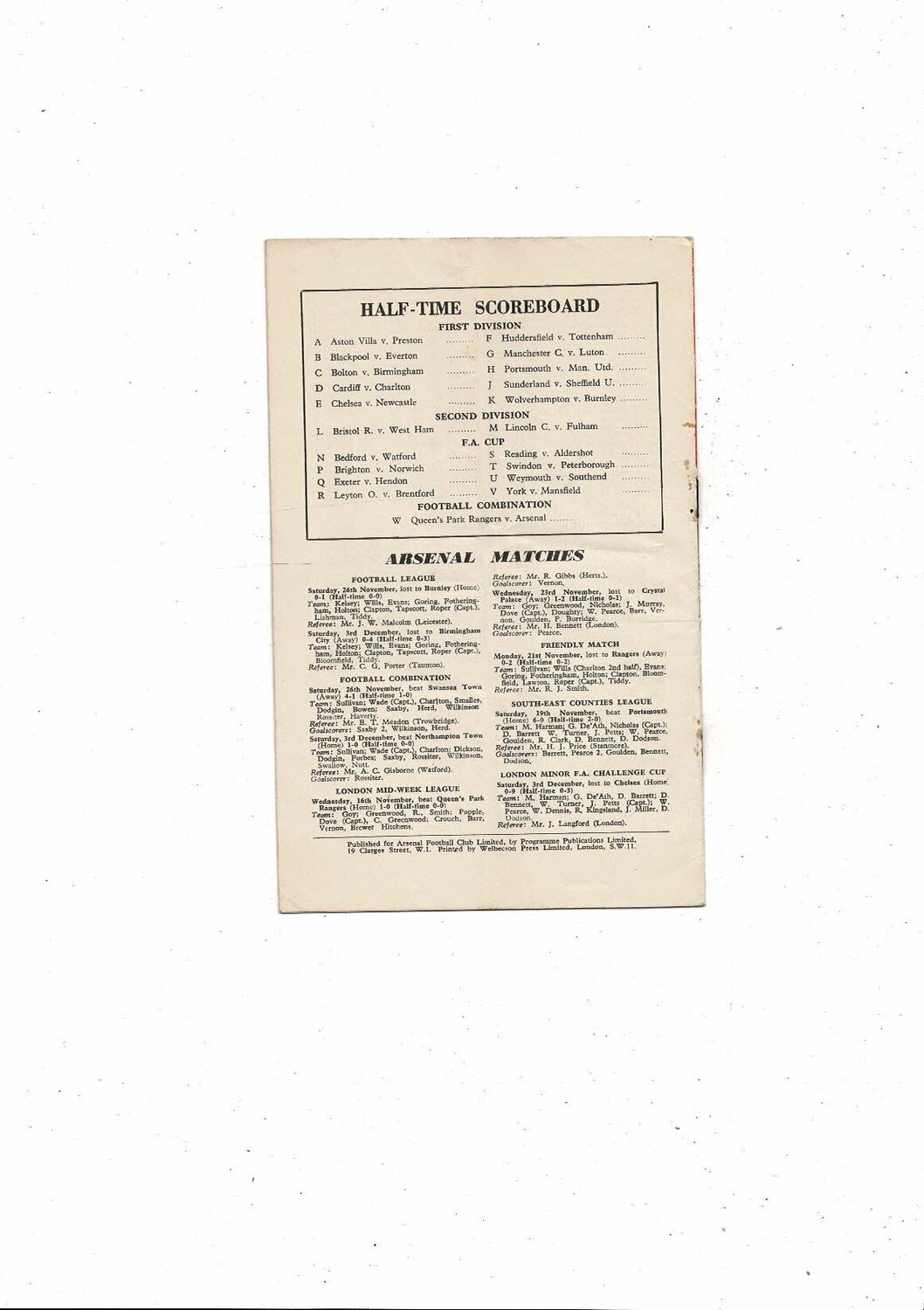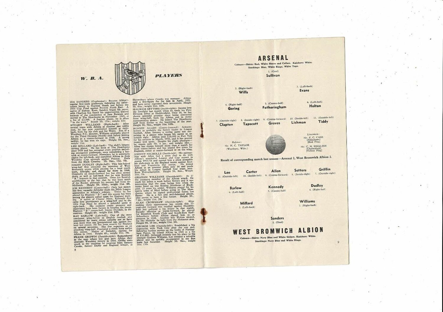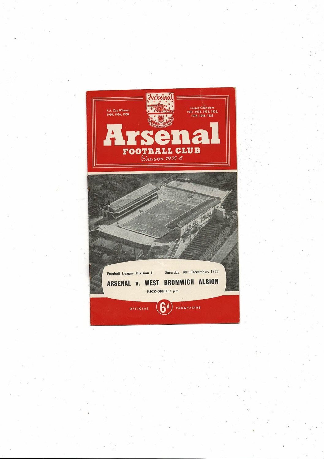 1955/56 Arsenal v West Bromwich Albion Football Programme