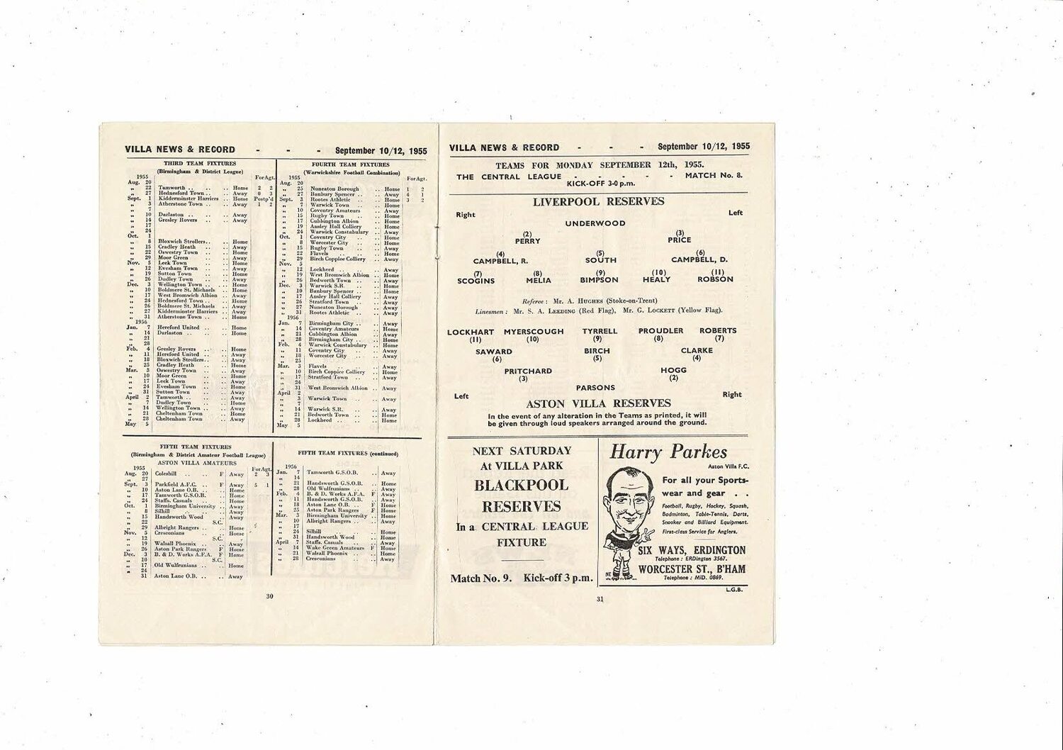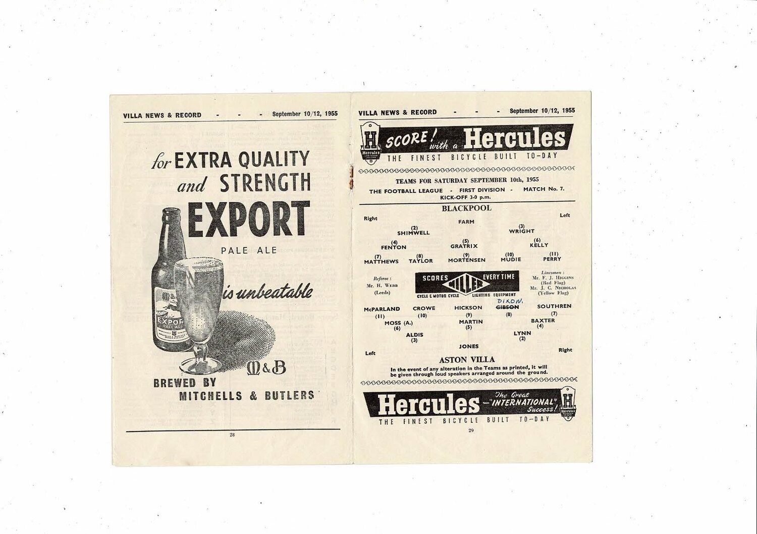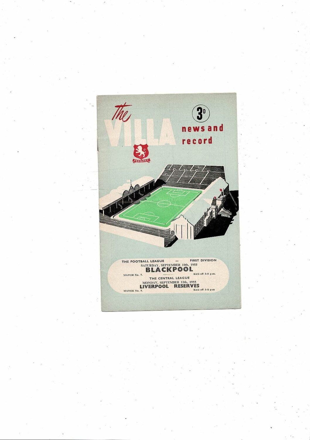 1955/56 Aston Villa v Blackpool + Liverpool Reserves double Football Programme