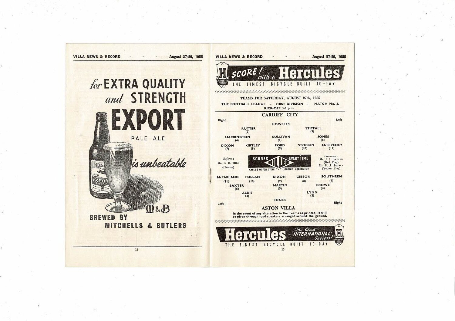 1955/56 Aston Villa v Cardiff City & Sunderland Double Football Programme