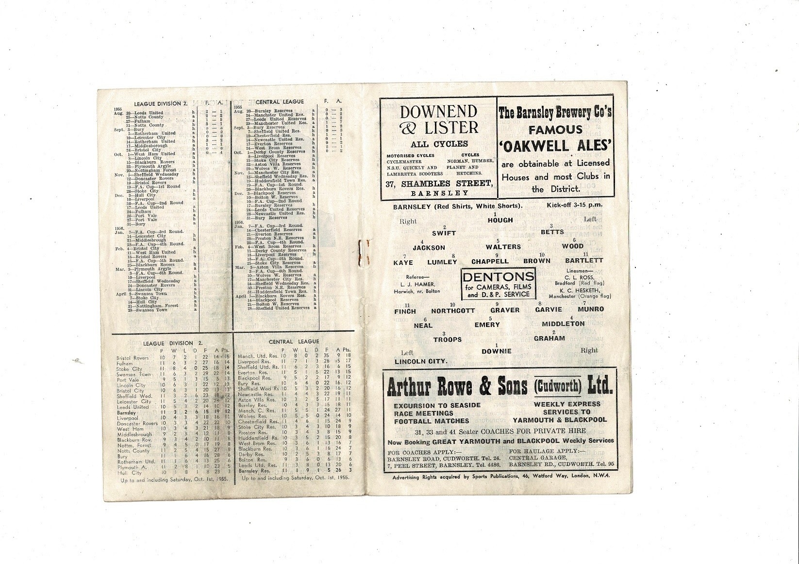 1955/56 Barnsley v Lincoln City Football Programme
