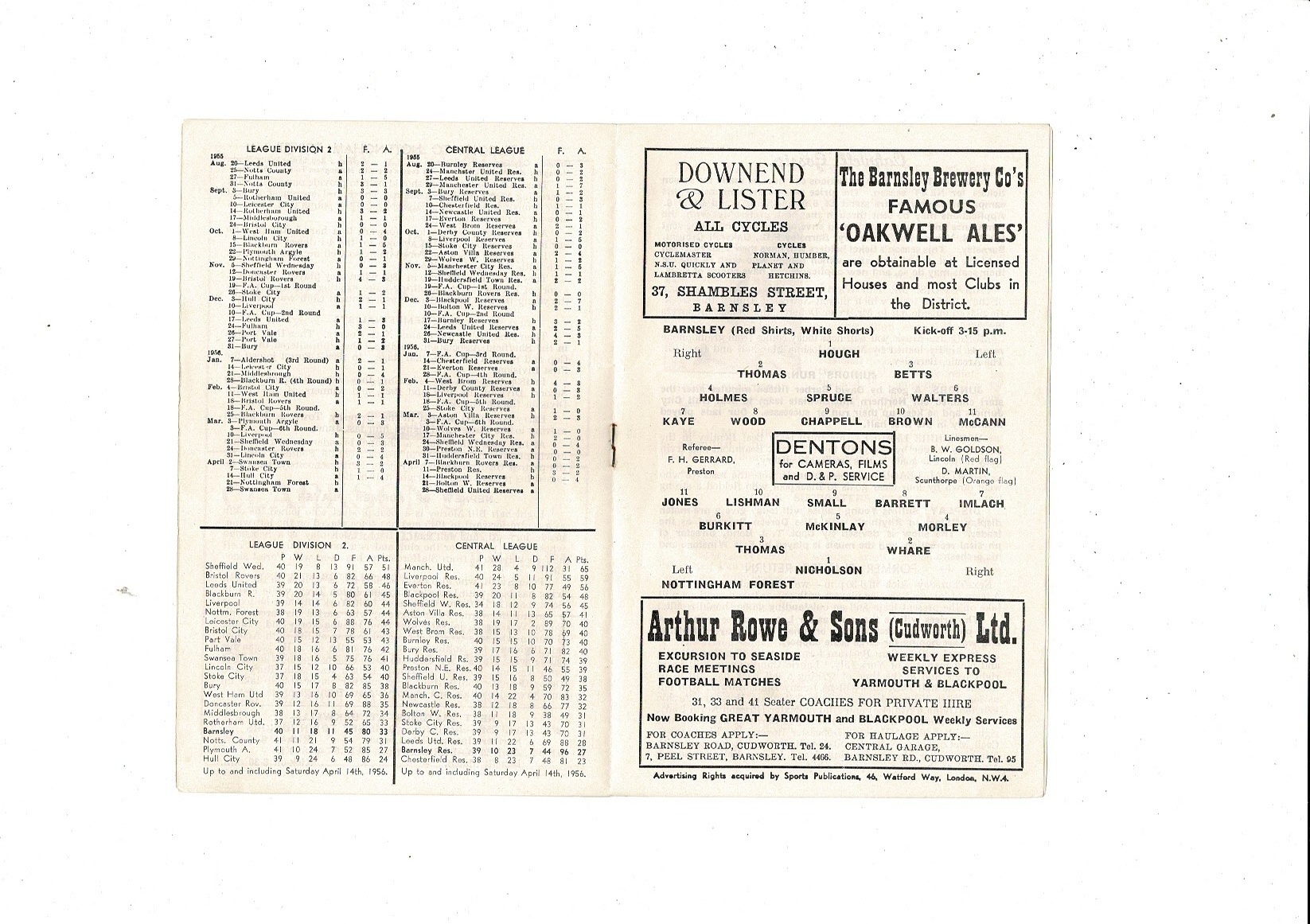 1955/56 Barnsley v Nottingham Forest Football Programme
