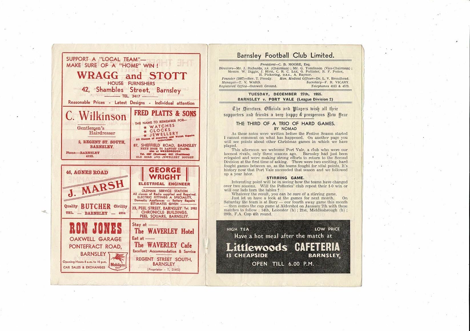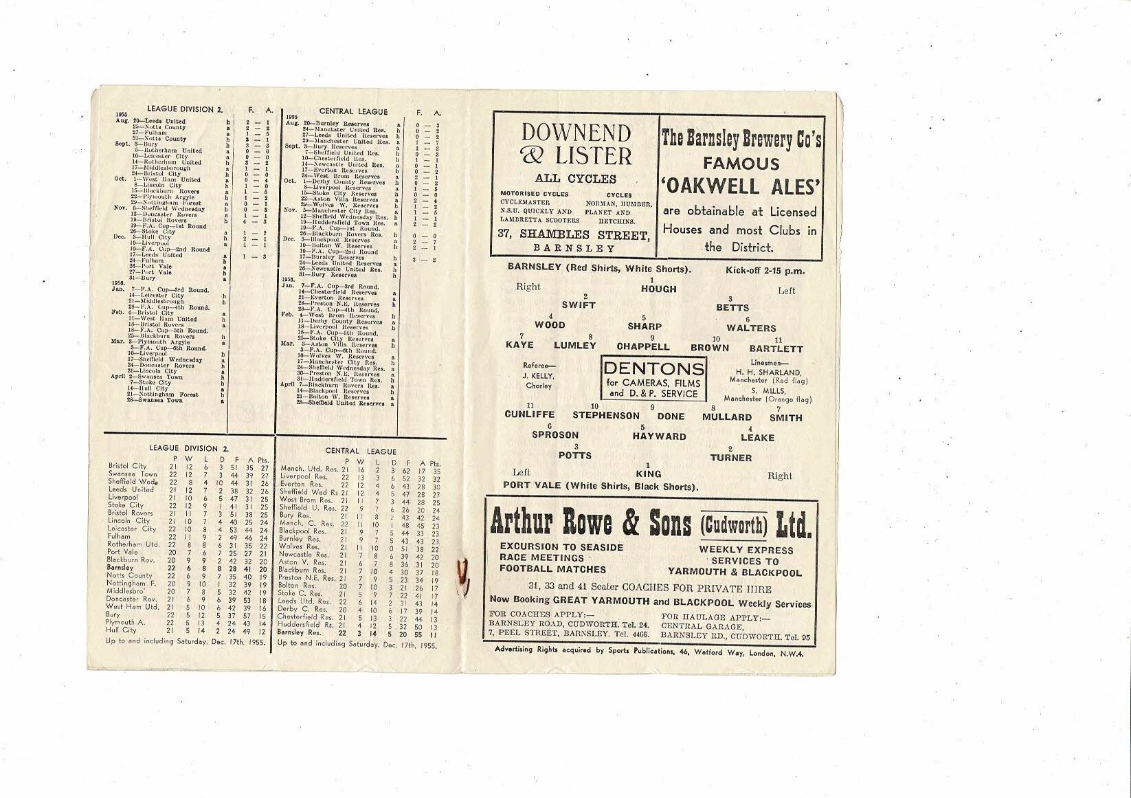 1955/56 Barnsley v Port Vale Football Programme