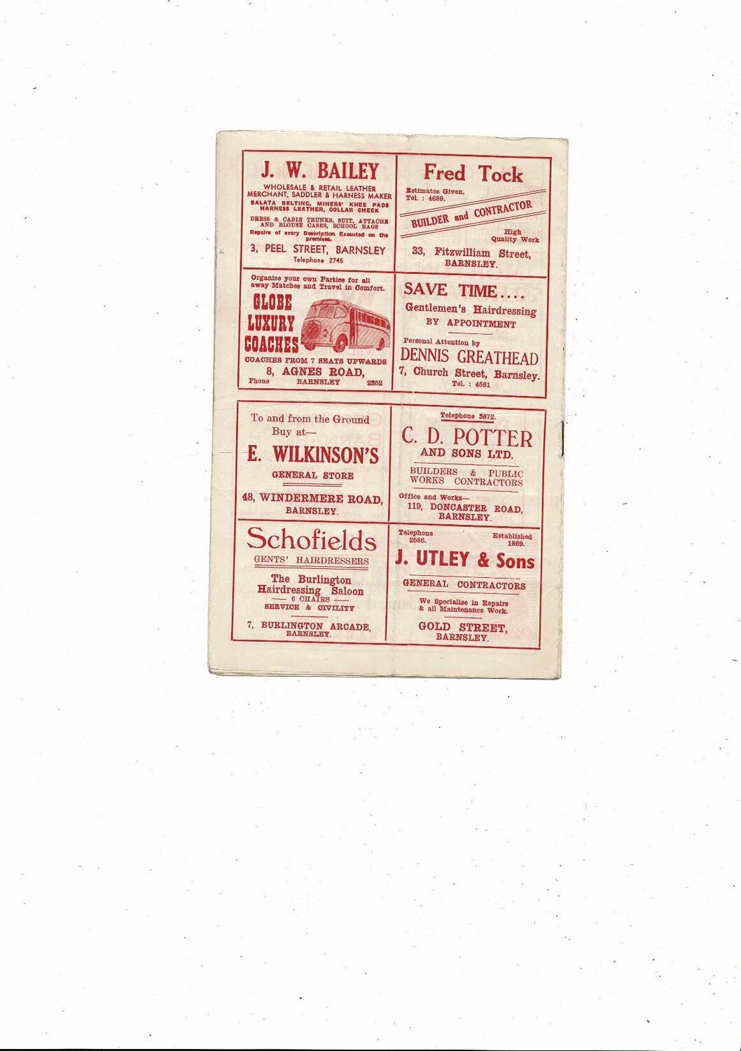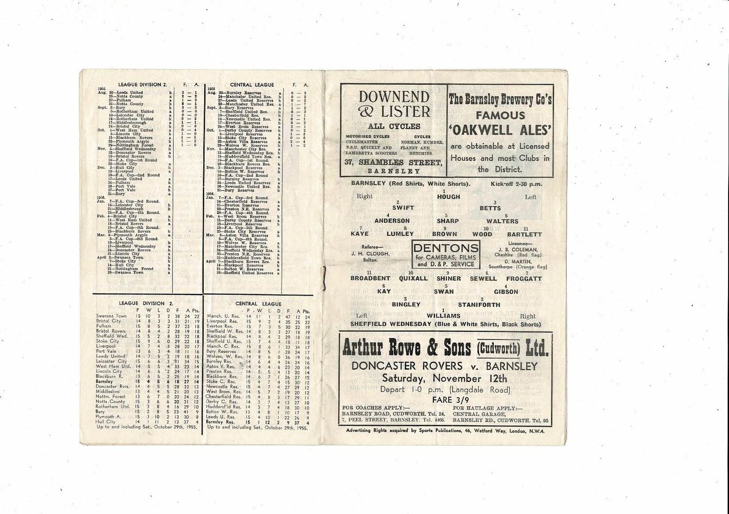 1955/56 Barnsley v Sheffield Wednesday Football Programme 5th November 1955