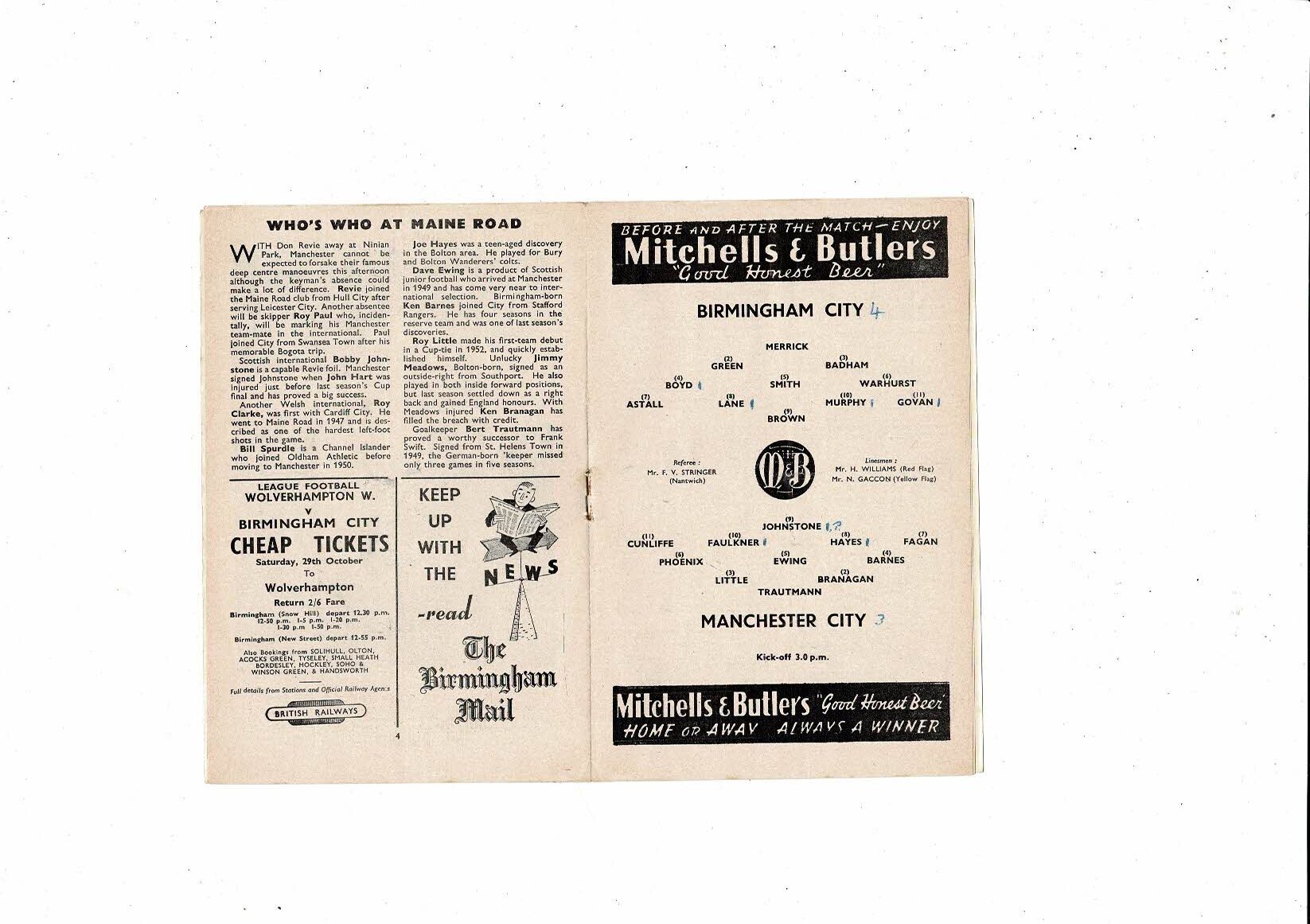 1955/56 Birmingham City v Manchester City Football Programme
