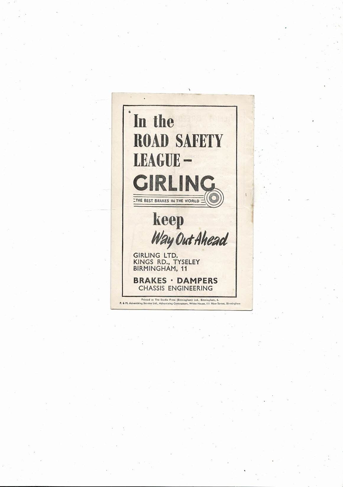 1955/56 Birmingham City v West Bromwich Aalbion Football Programme