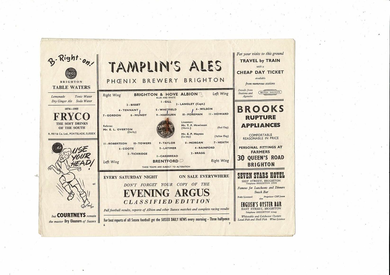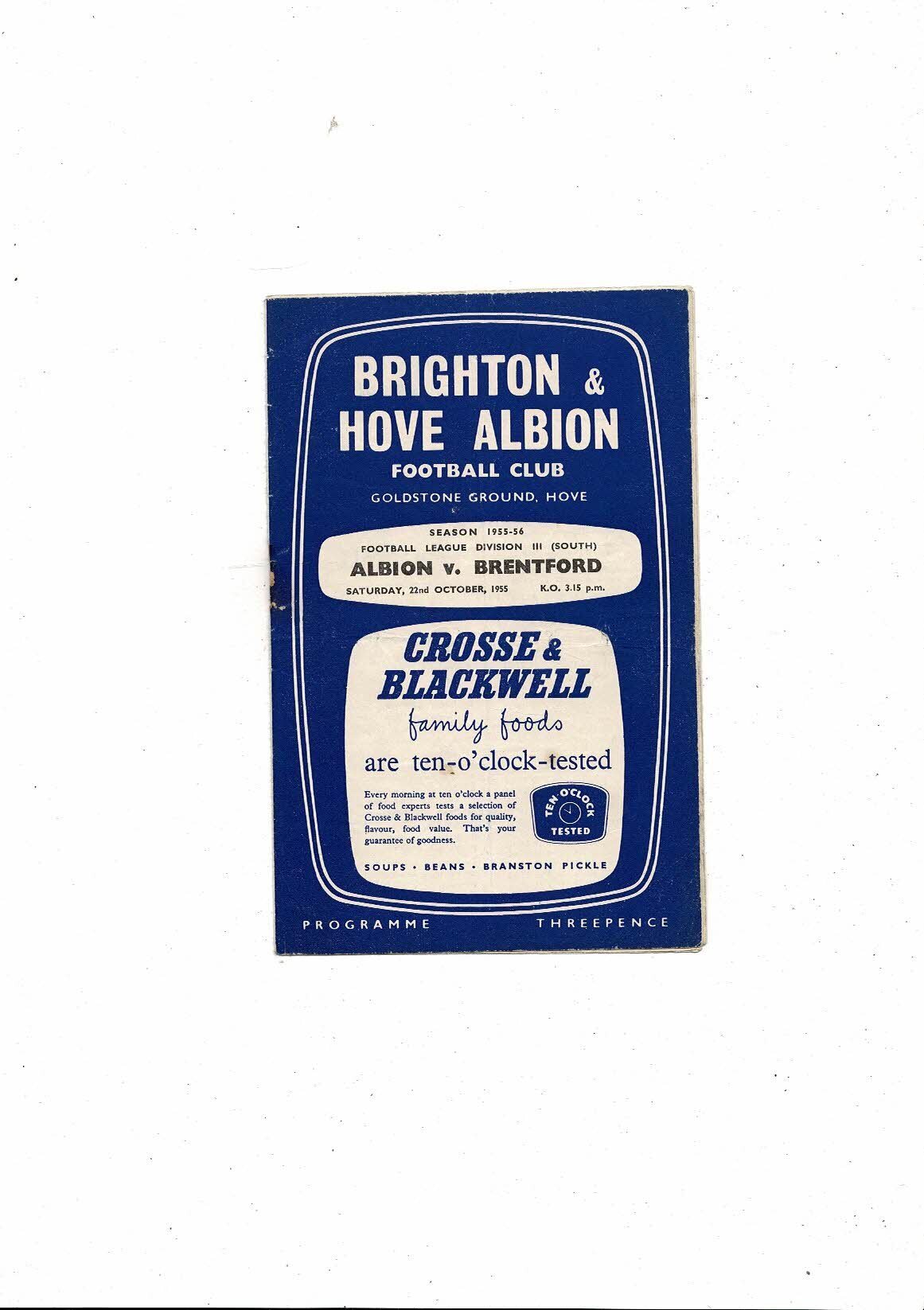 1955/56 Brighton v Brentford Football Programme