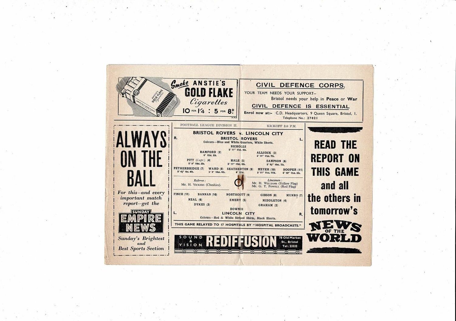 1955/56 Bristol Rovers v Lincoln City Football Programme