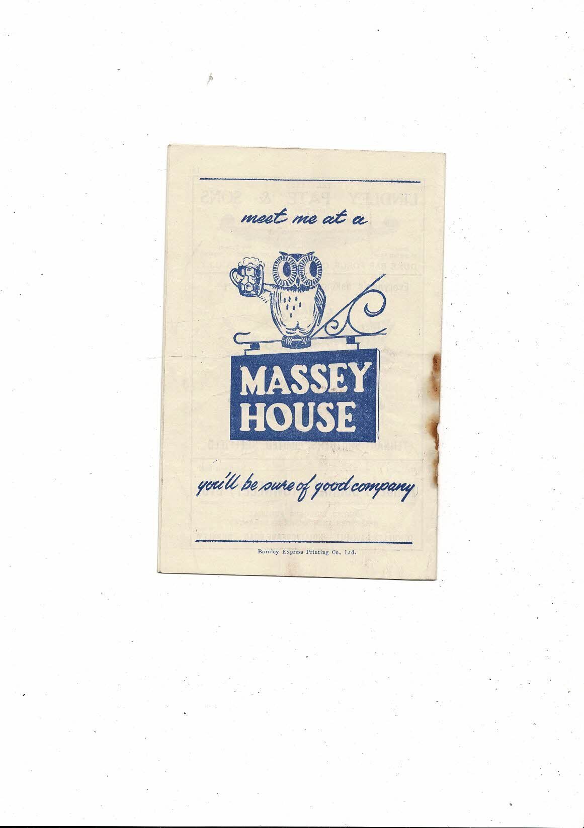 This Original Football Programme is creased also has a fold with some staining & hole where rusty staple removed. No handwriting. Please see scans.