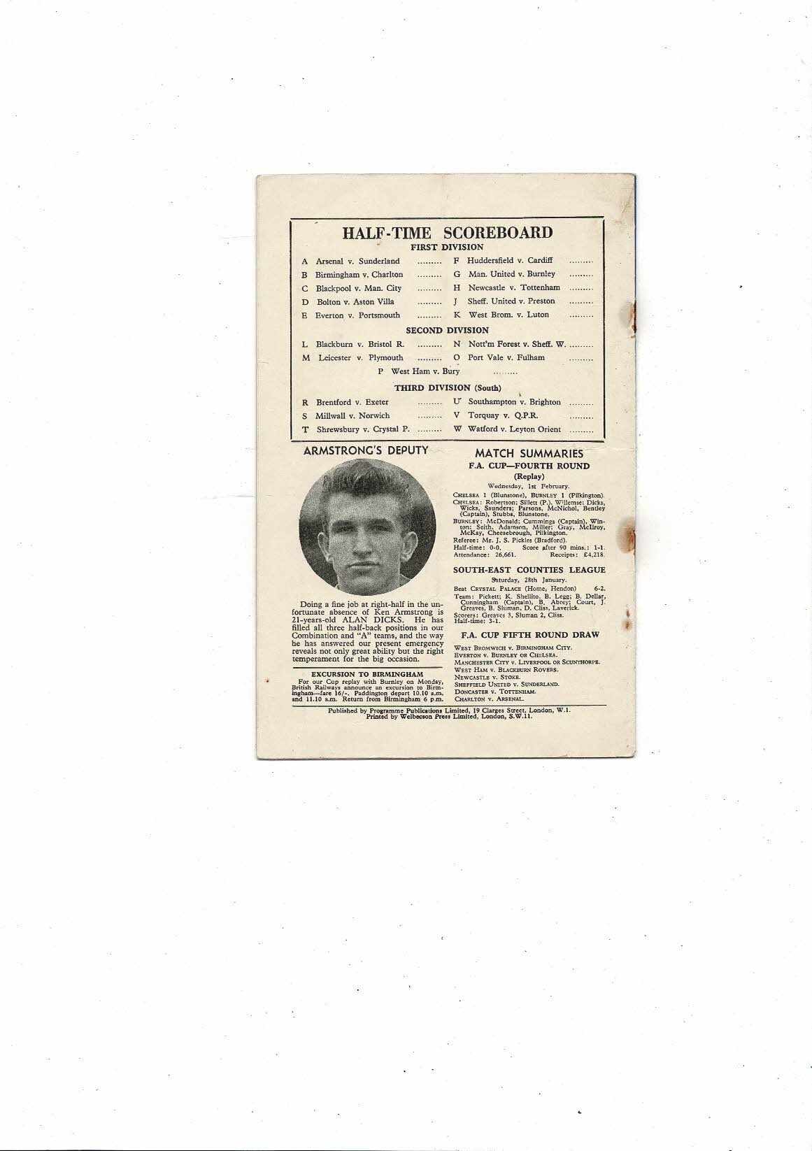 This original Football Programme is creased also has a fold with some staining, several tiny nic's, rusty staples, scorers & team changes noted.