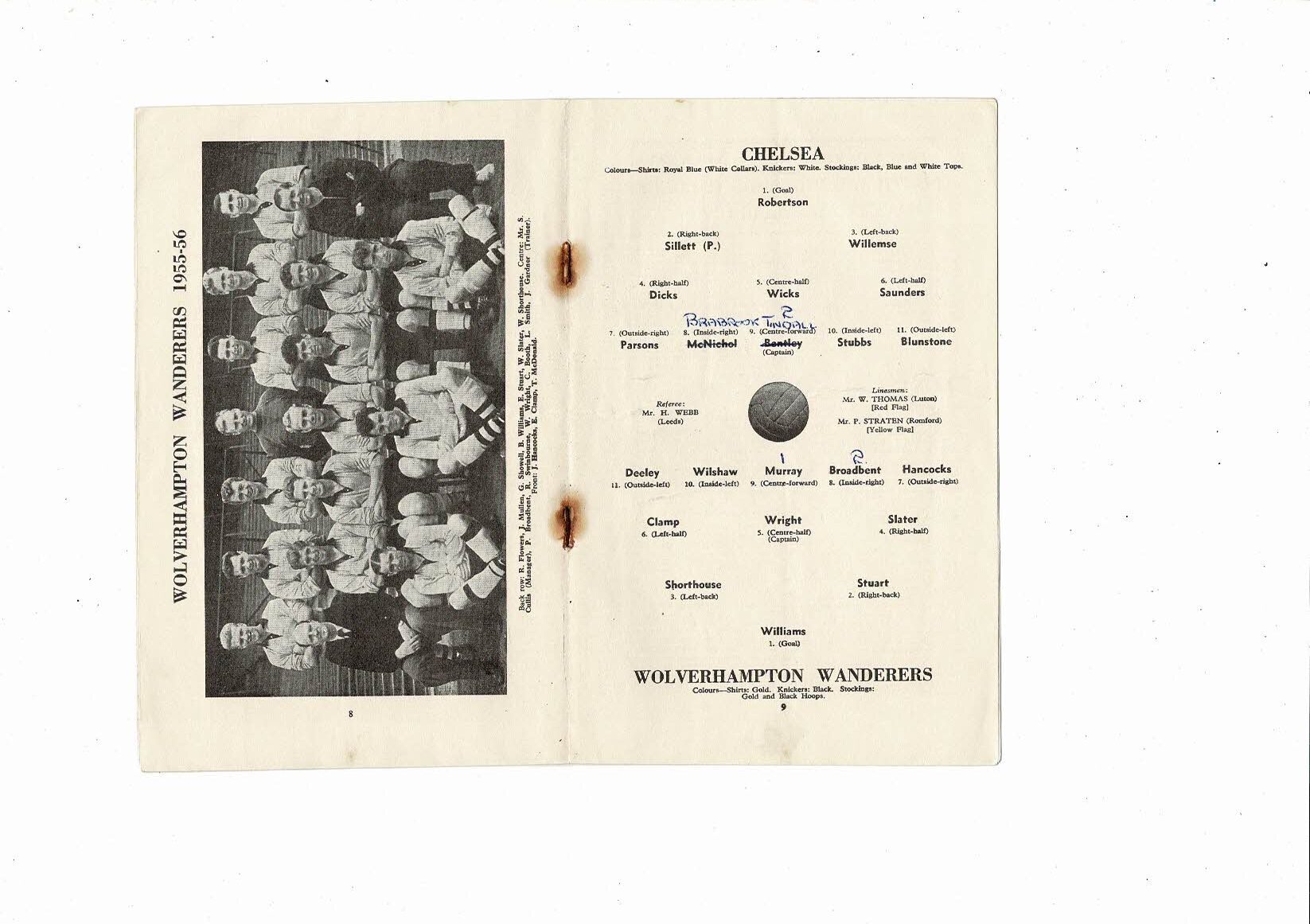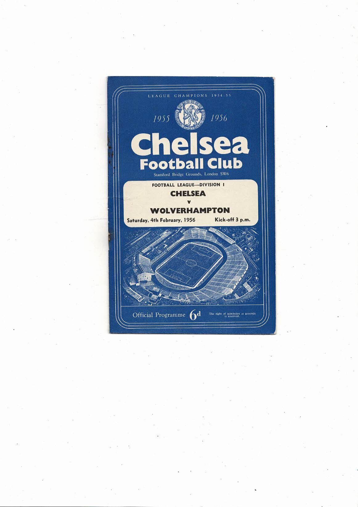 1955/56 Chelsea v Wolves Football Programme