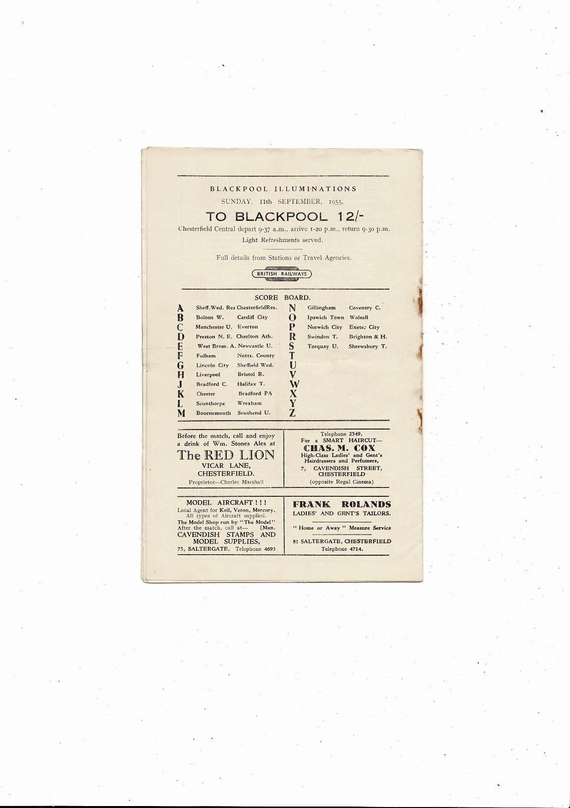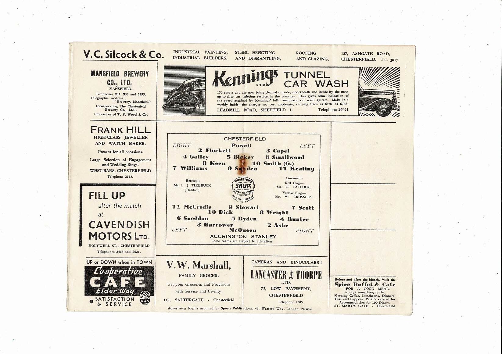 1955/56 Chesterfield v Accrington Stanley Football Programme