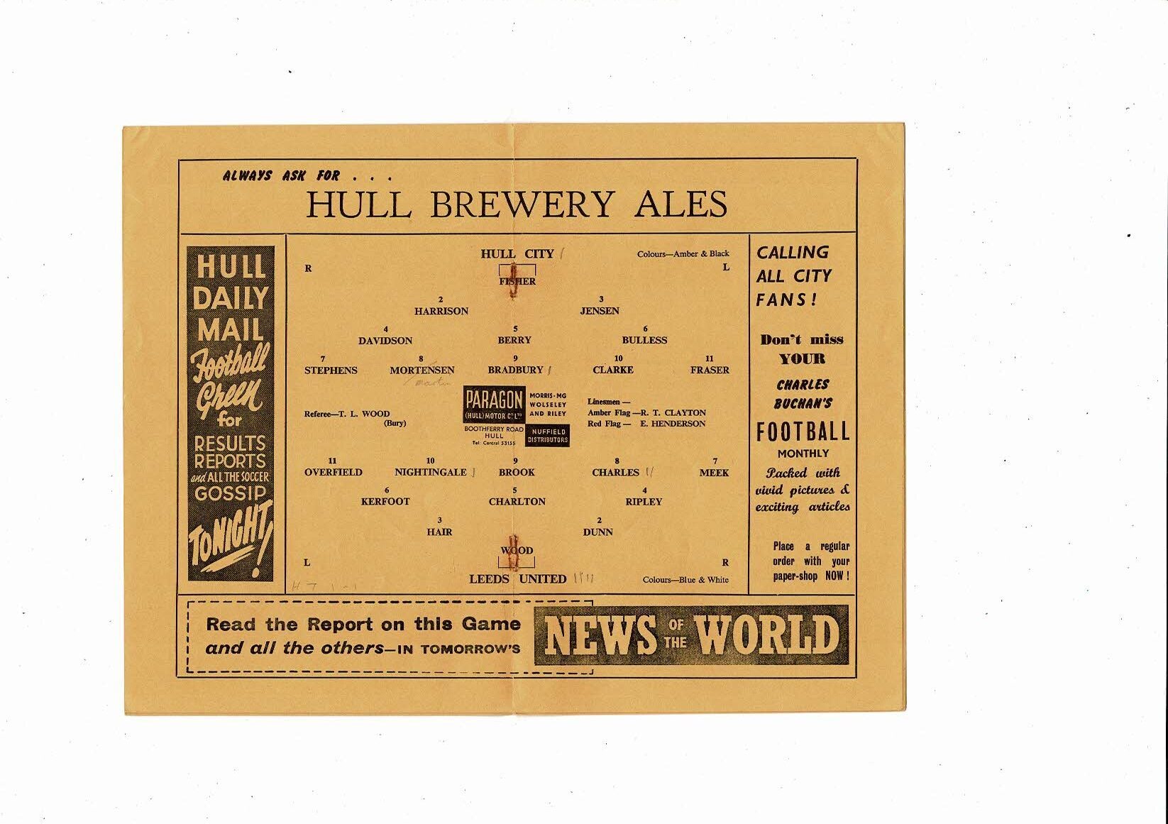 This Original Football Programme is creased with some staining where staples removed, score, scorer & one team change noted in pencil. Please see scans