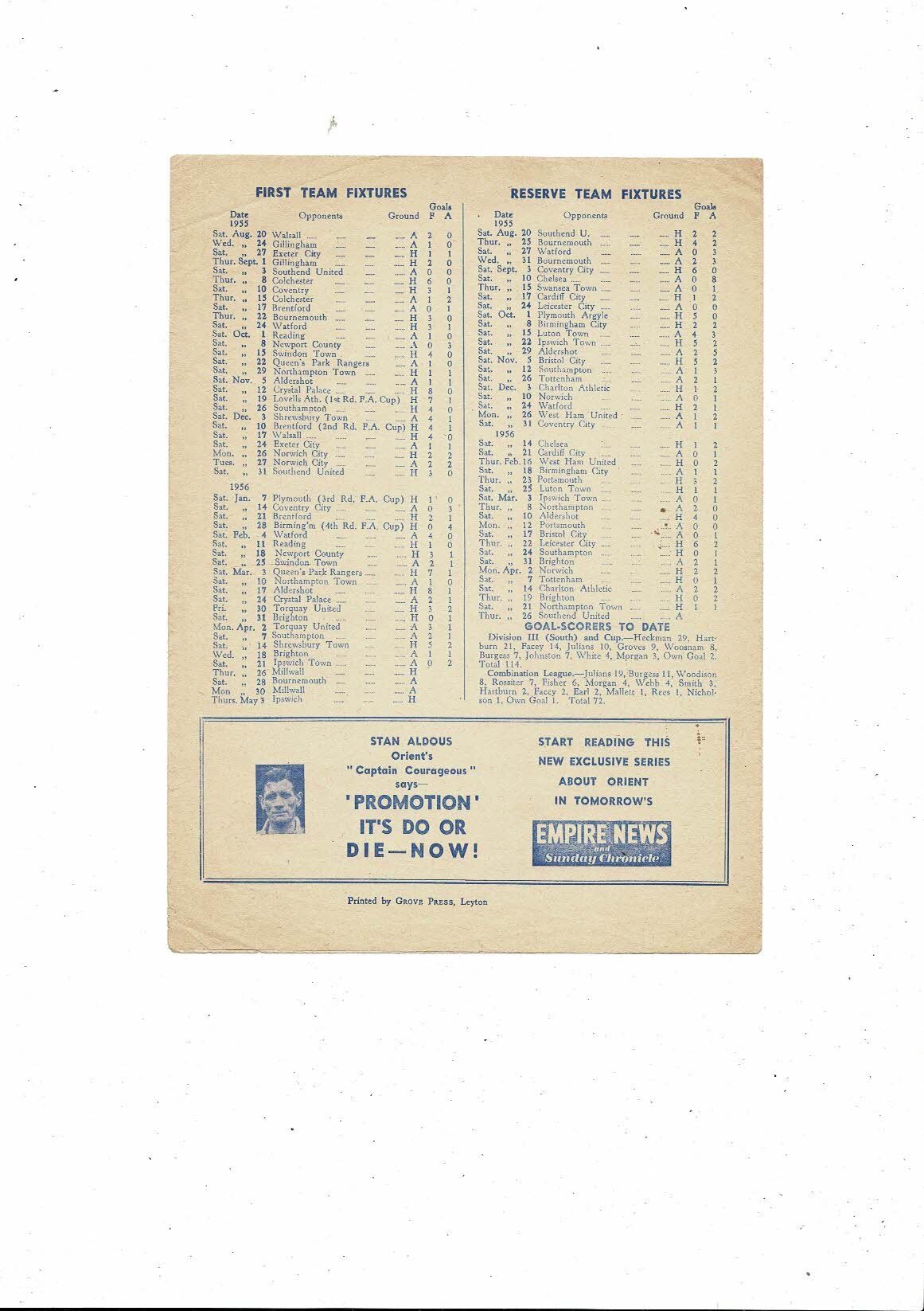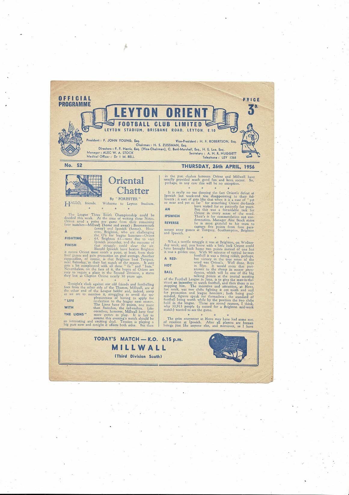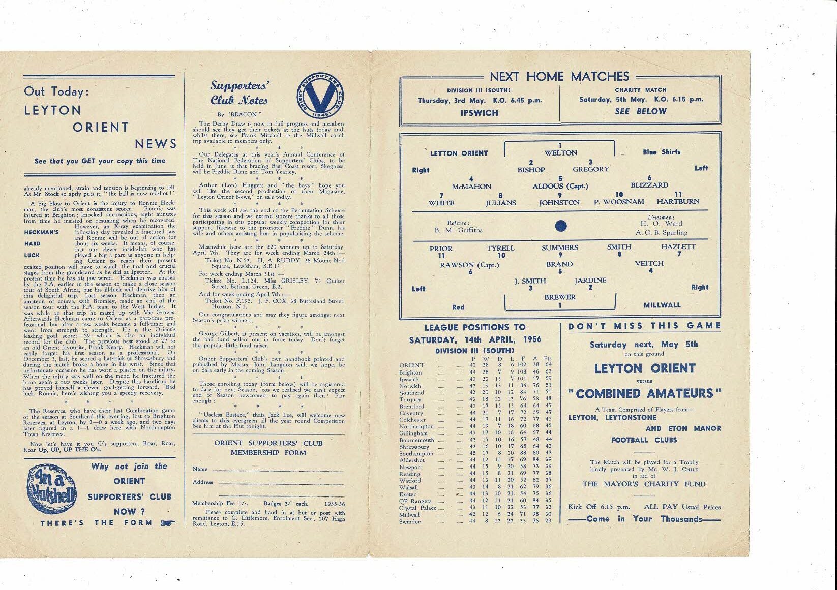 1955/56 Leyton Orient v Millwall Football Programme