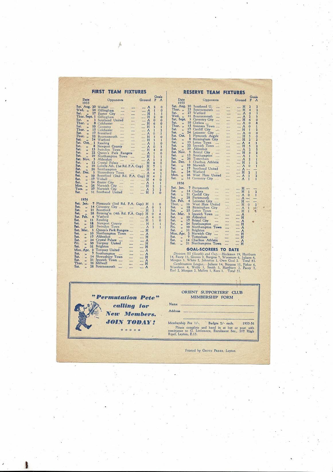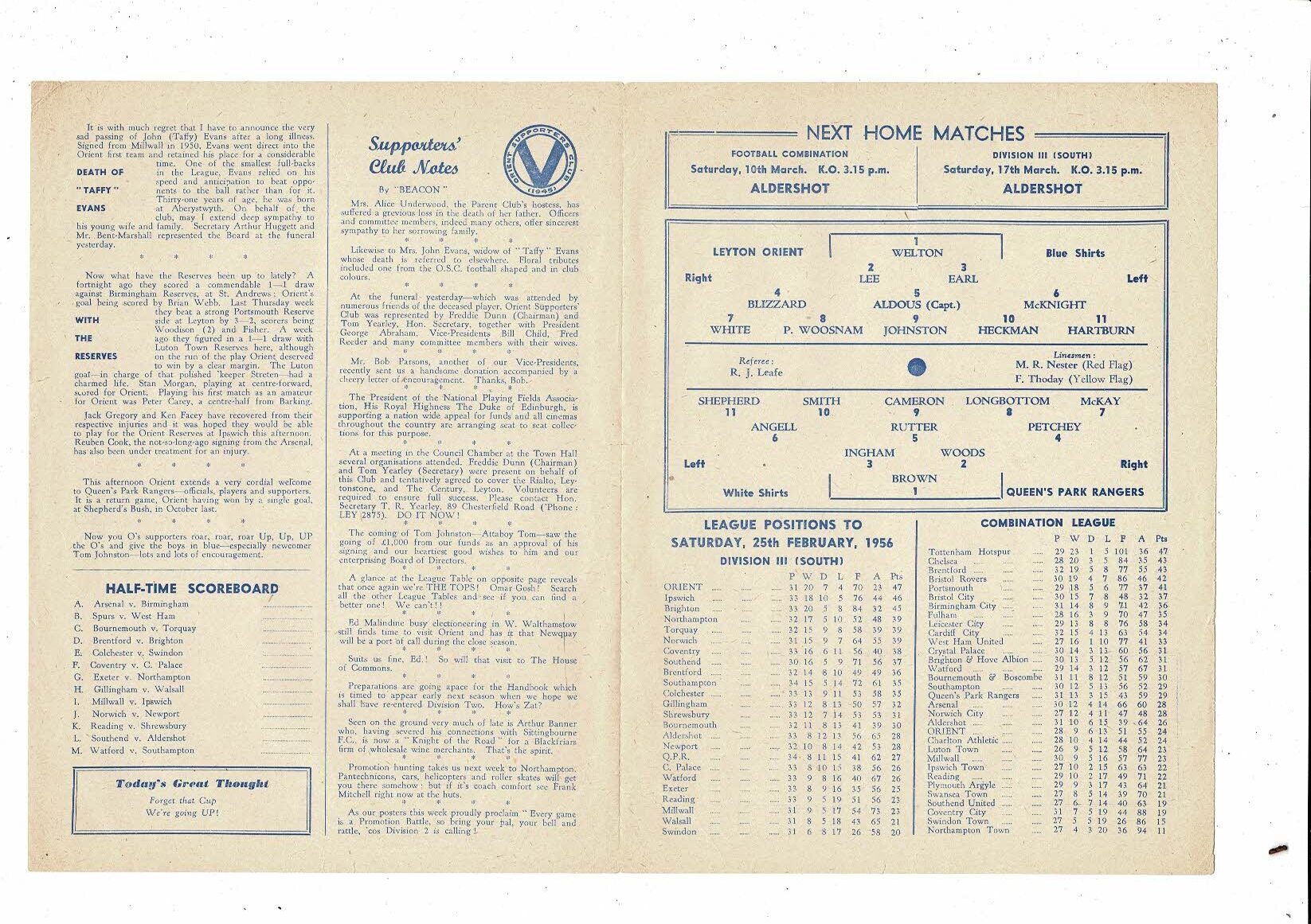 1955/56 Leyton Orient v Queens Park Rangers Football Programme