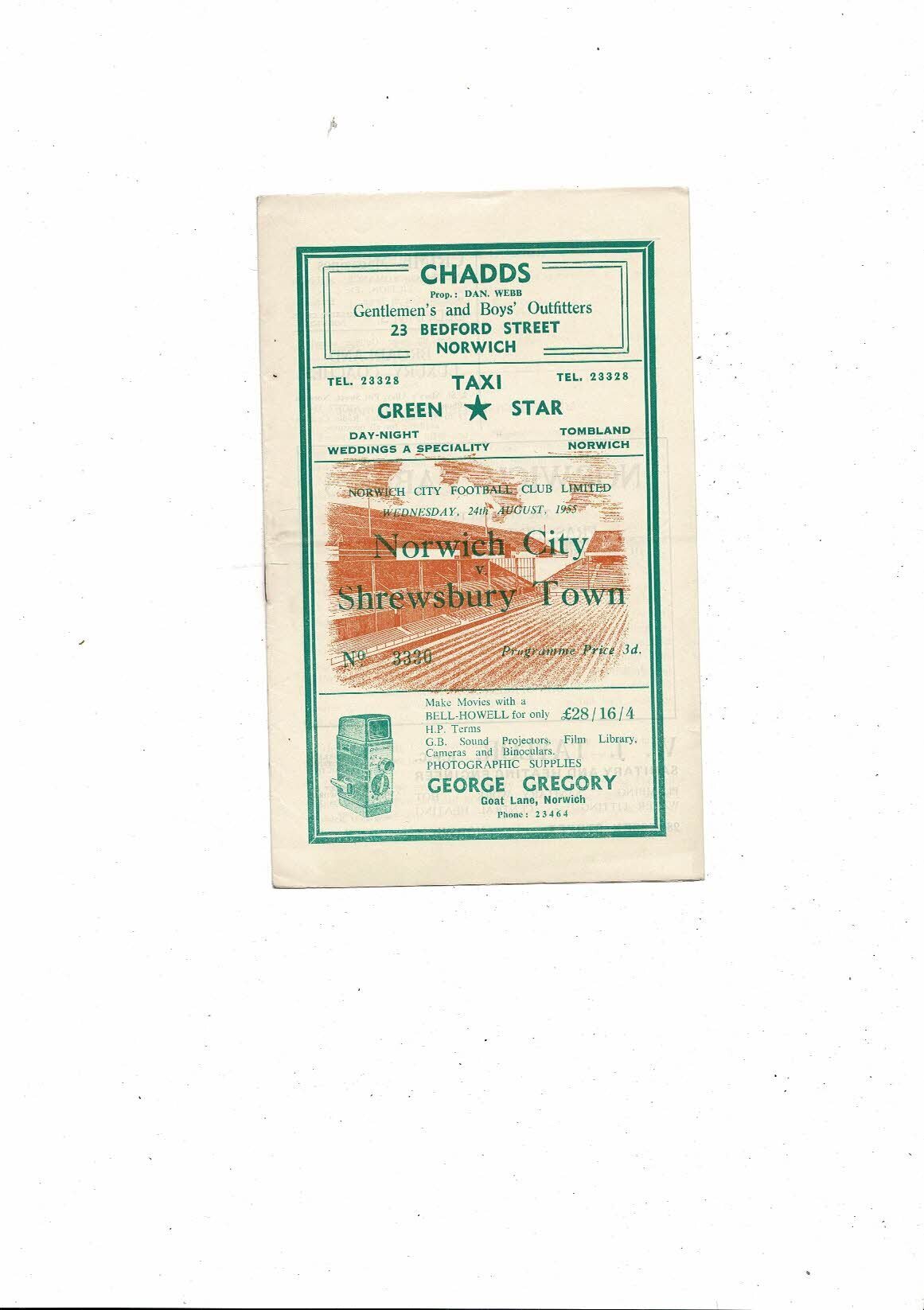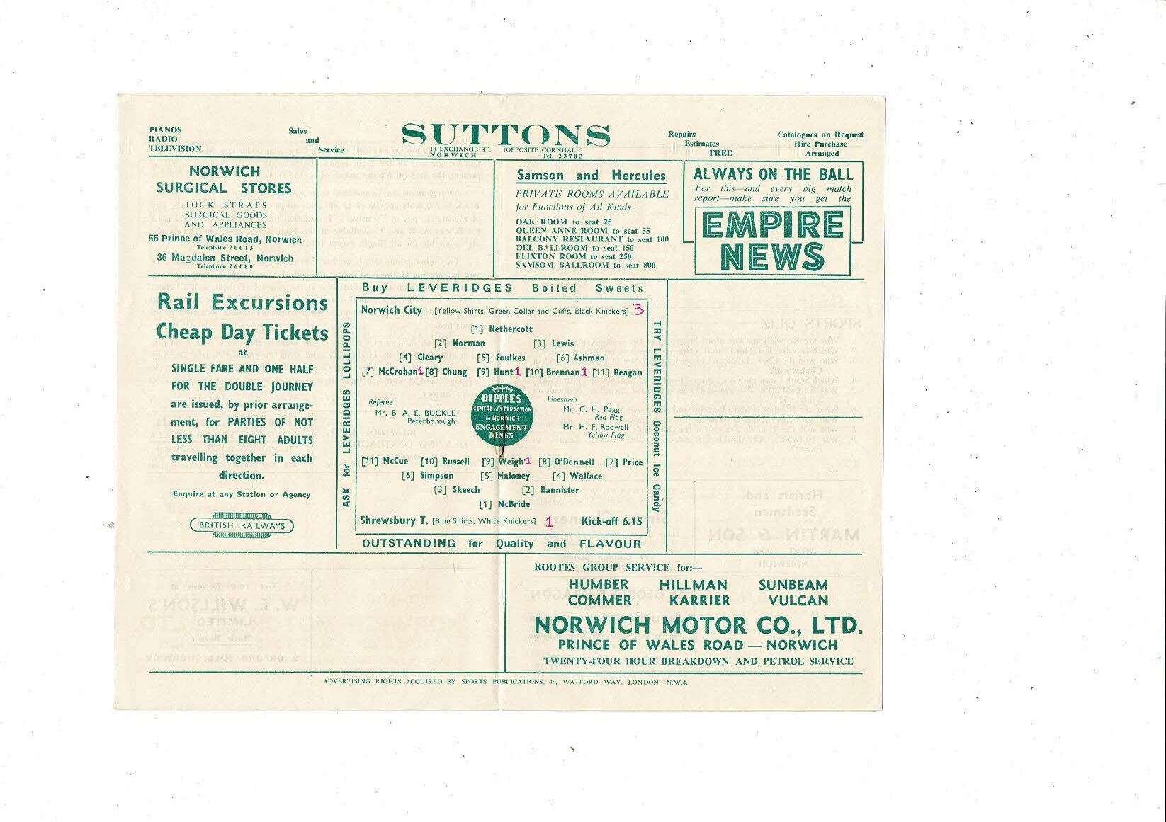 1955/56 Norwich City v Shrewsbury Town Football Programme