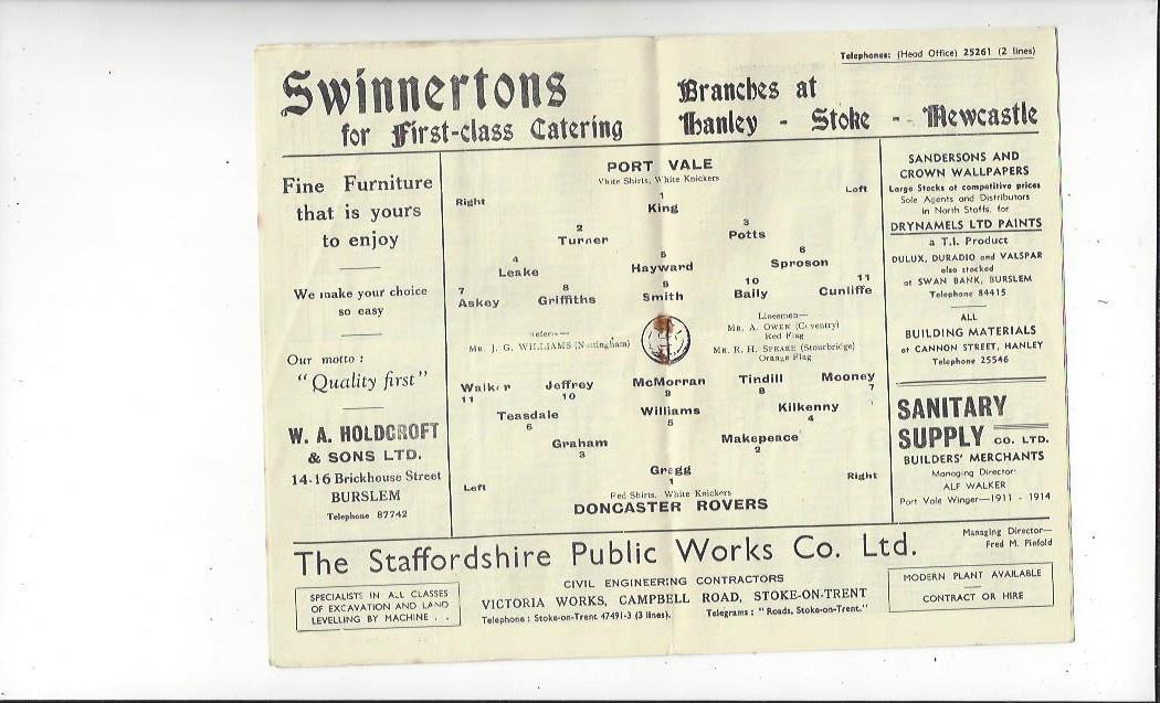 1955/56 Port Vale v Doncaster Rovers Football Programme