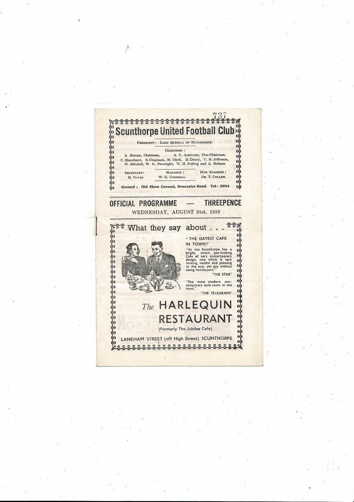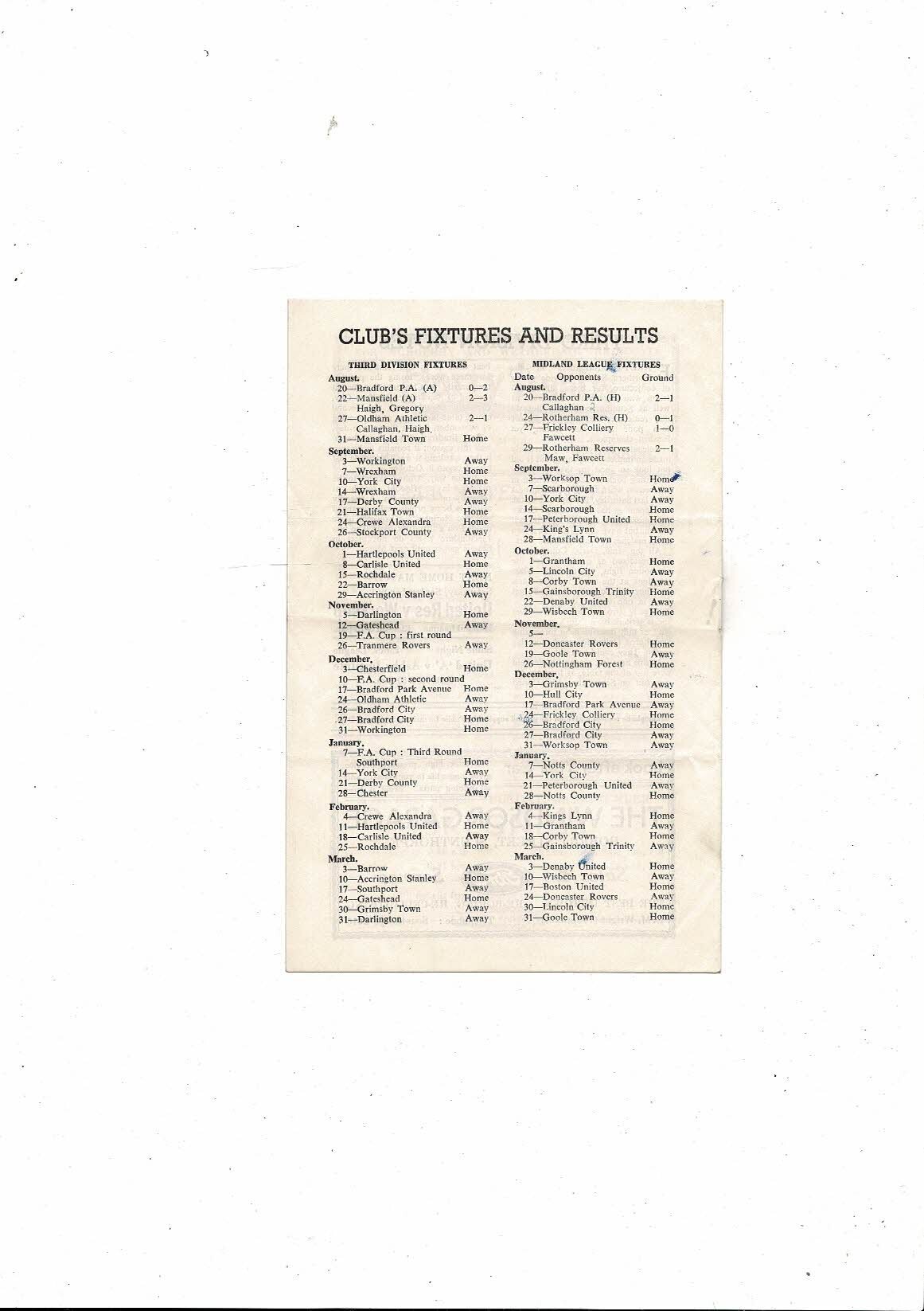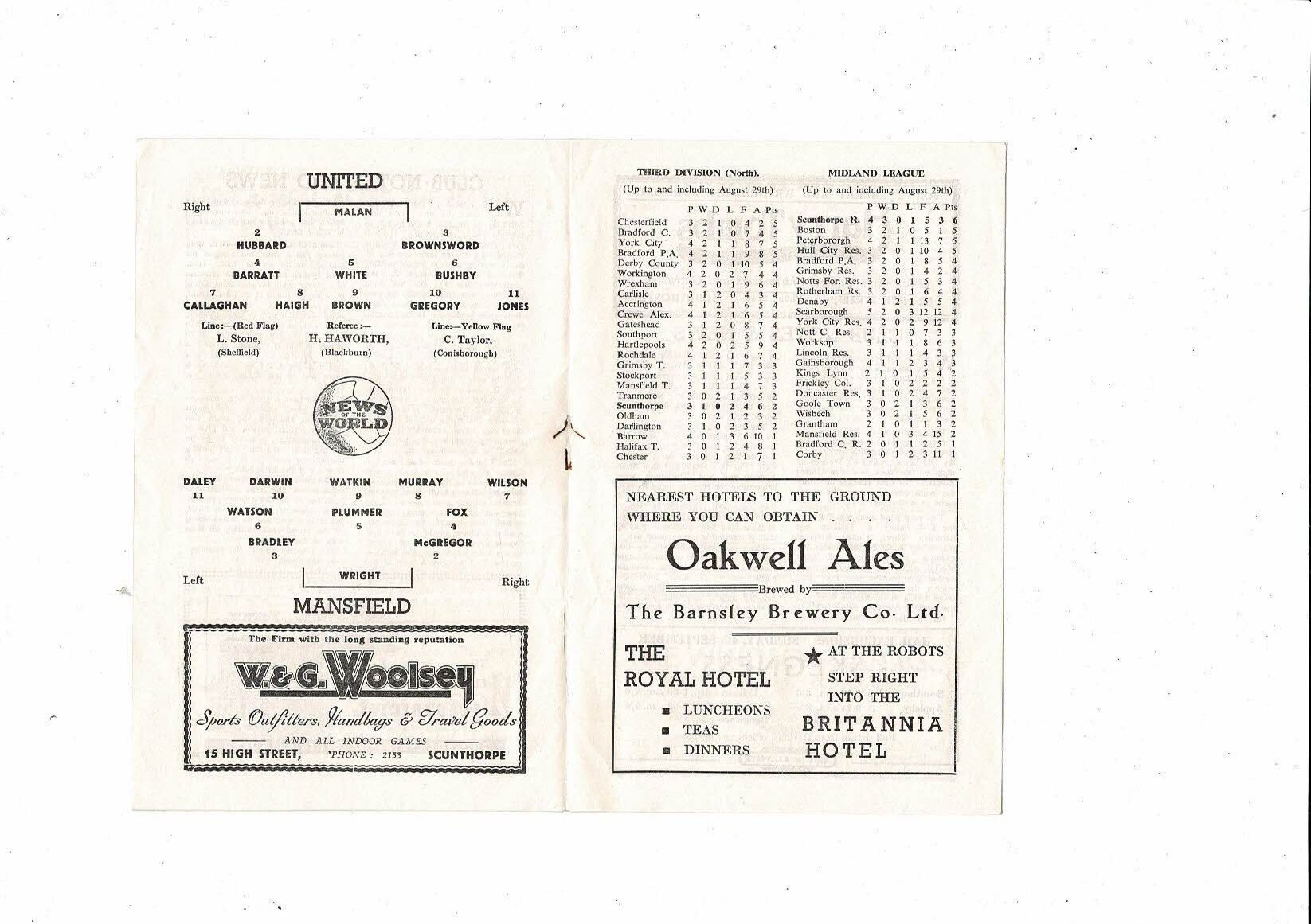 1955/56 Scunthorpe United v Mansfield Town Football Programme